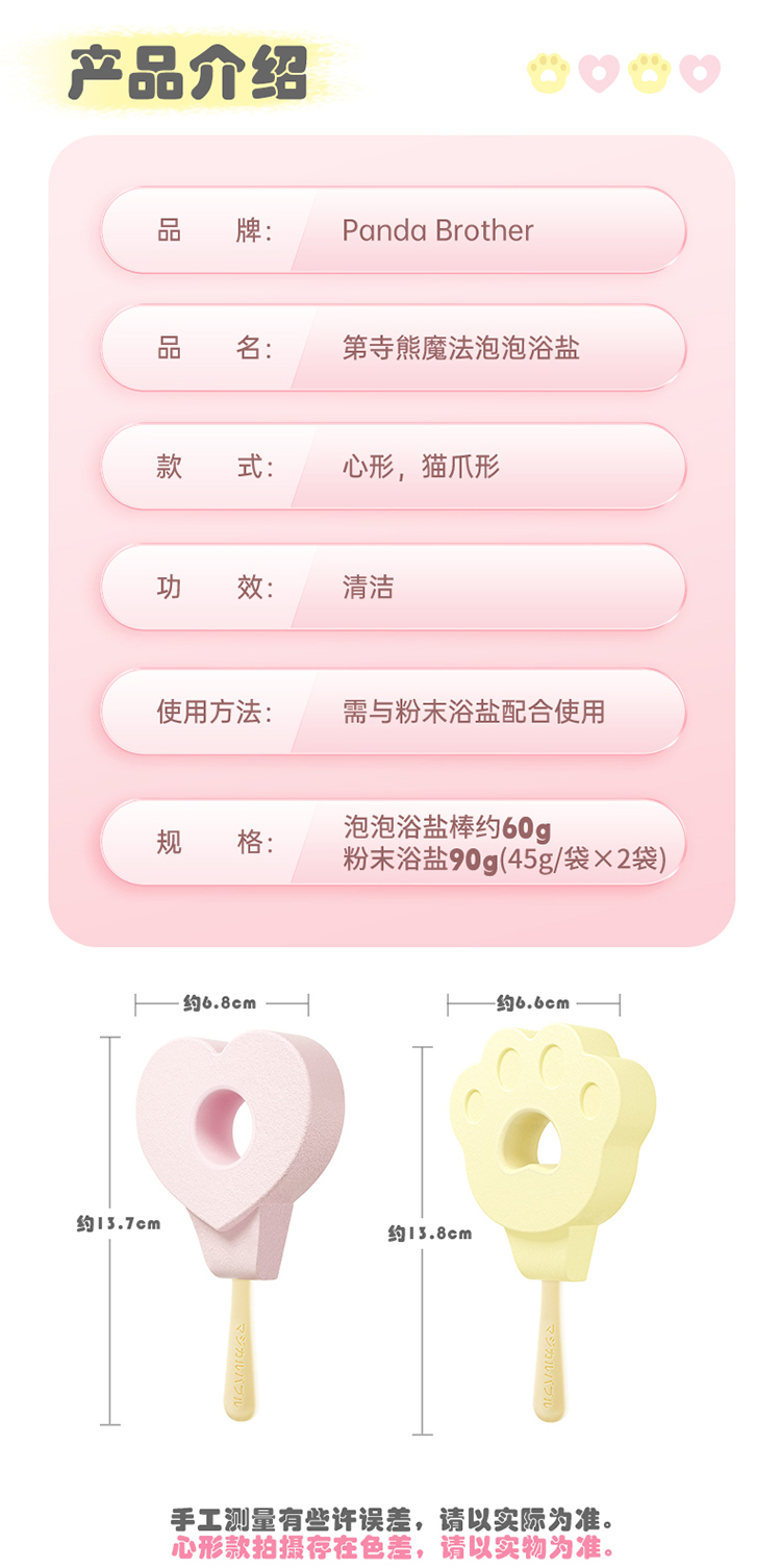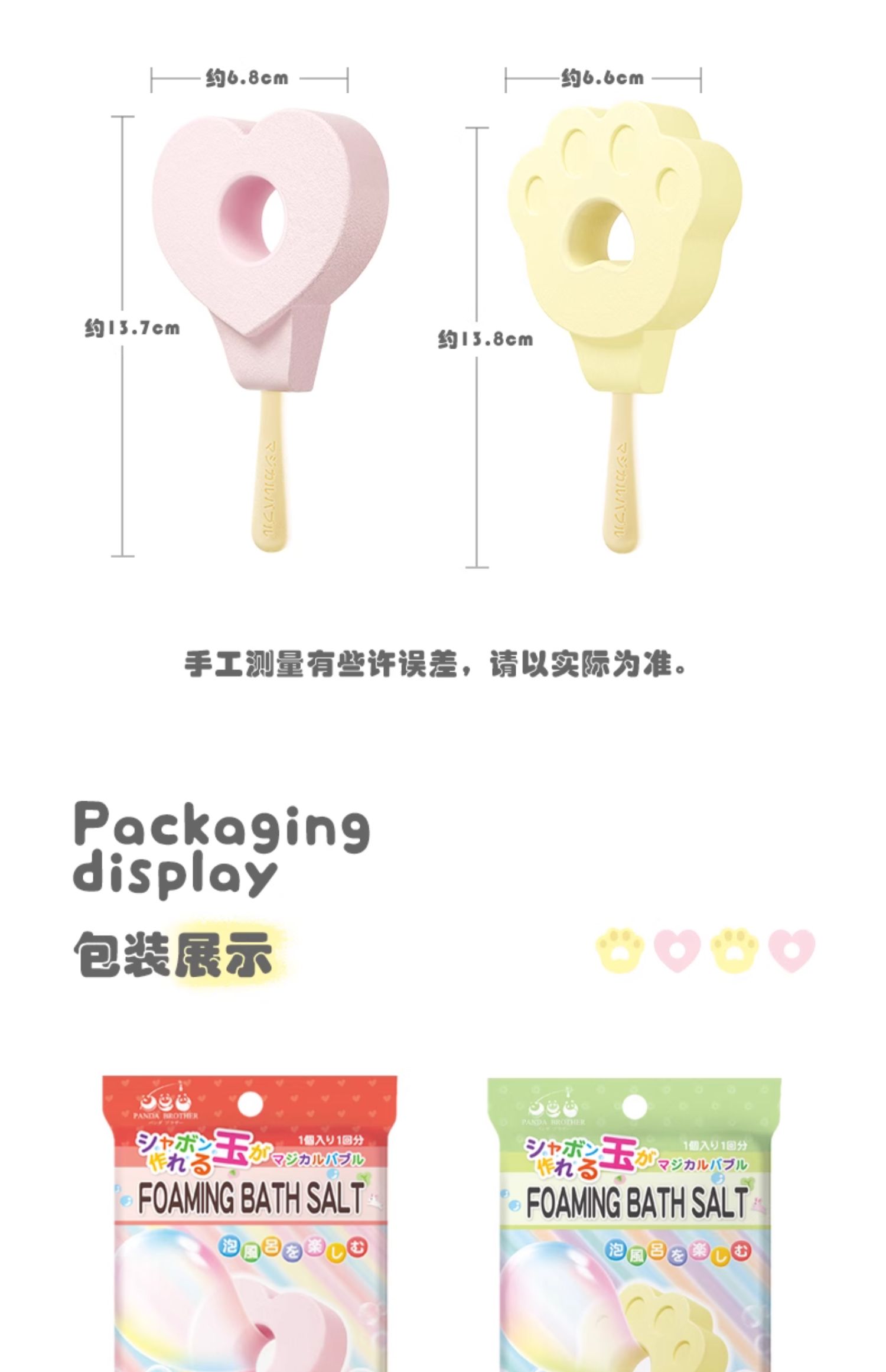 熊猫兄弟 第寺熊魔法泡泡浴盐(猫爪形)60g+90g 干净皂香 1个