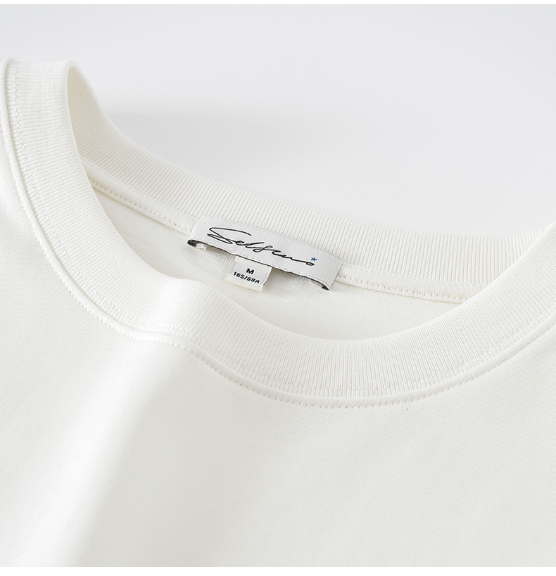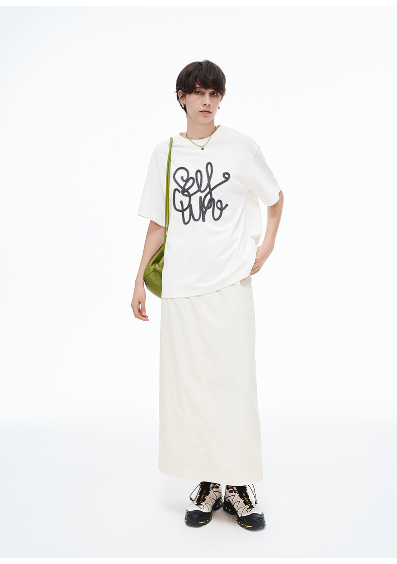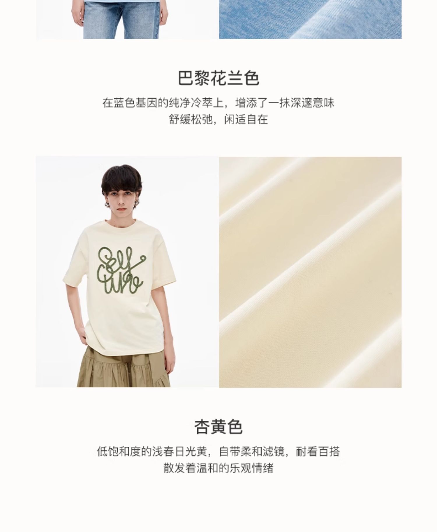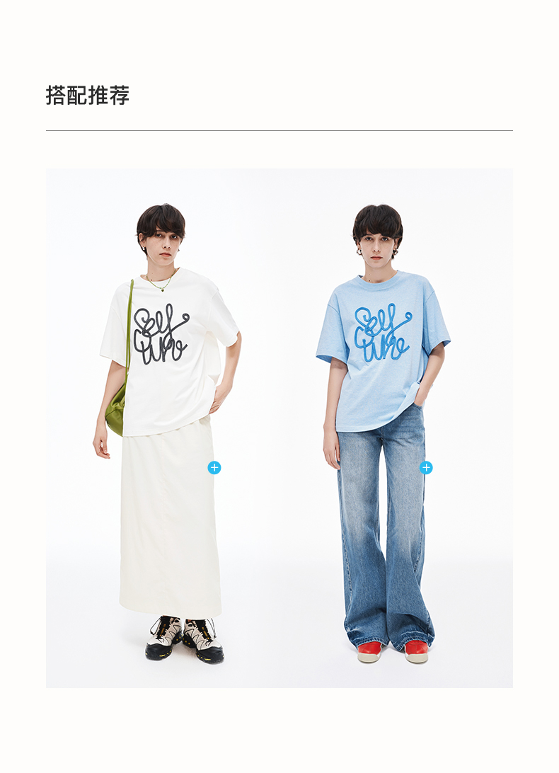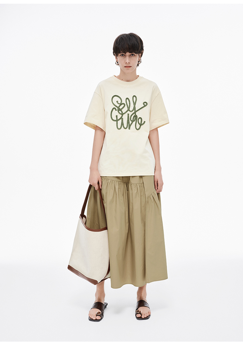 [黄圣依同款]SELFWHO全棉纯色短袖T恤女夏季新款宽松手工摇绣上衣