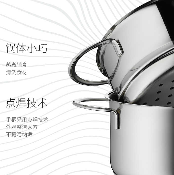 康巴赫生活馆德国WMF加厚不锈钢双层蒸笼蒸锅