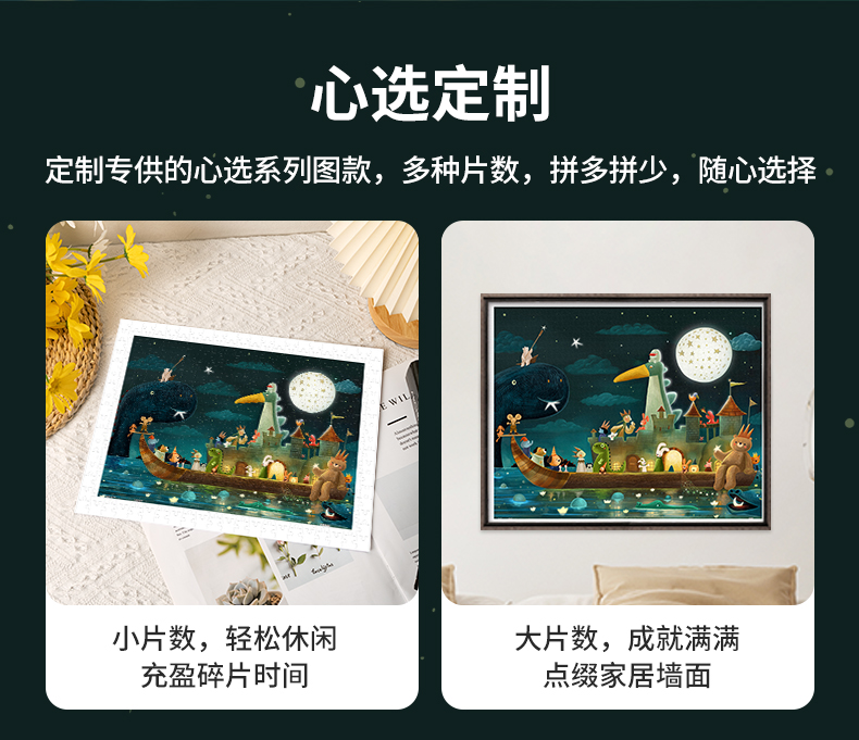 48片 贺卡拼图 V1147 月牙照江堤-鱼灯夜游