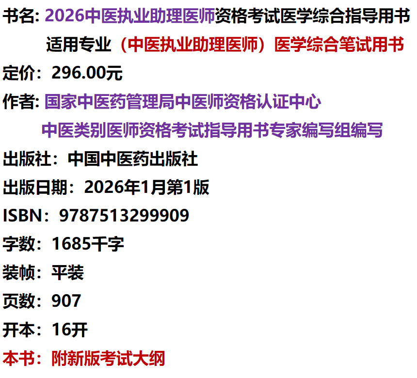 2026年中医执业助理医师资格考试医学综合指导用书 规定学历师承或确有专长中医助理医师职业指南笔试书大纲 中国中医药出版社