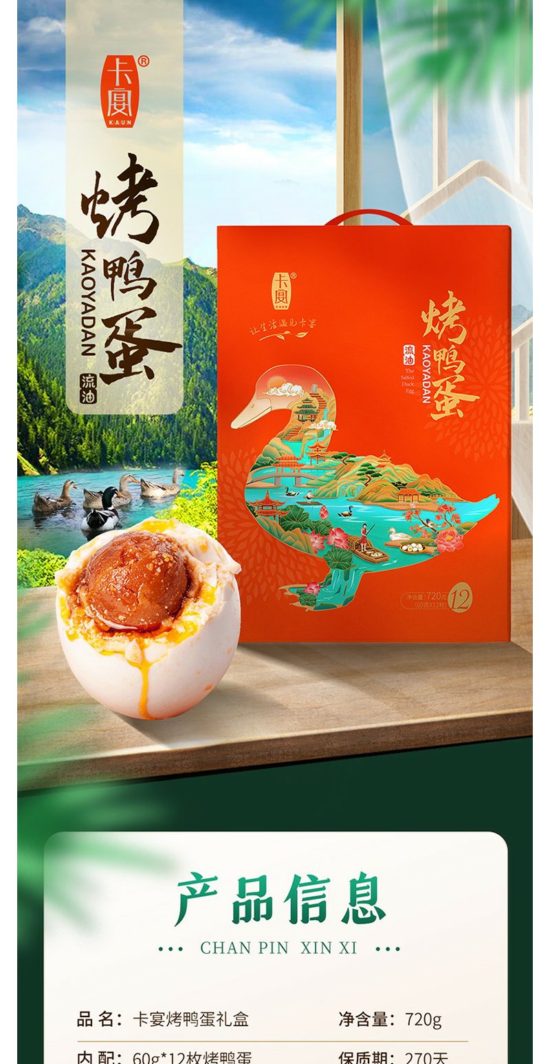 卡宴 烤鸭蛋 流油咸鸭蛋 新鲜腌制鸭蛋 60g*12枚