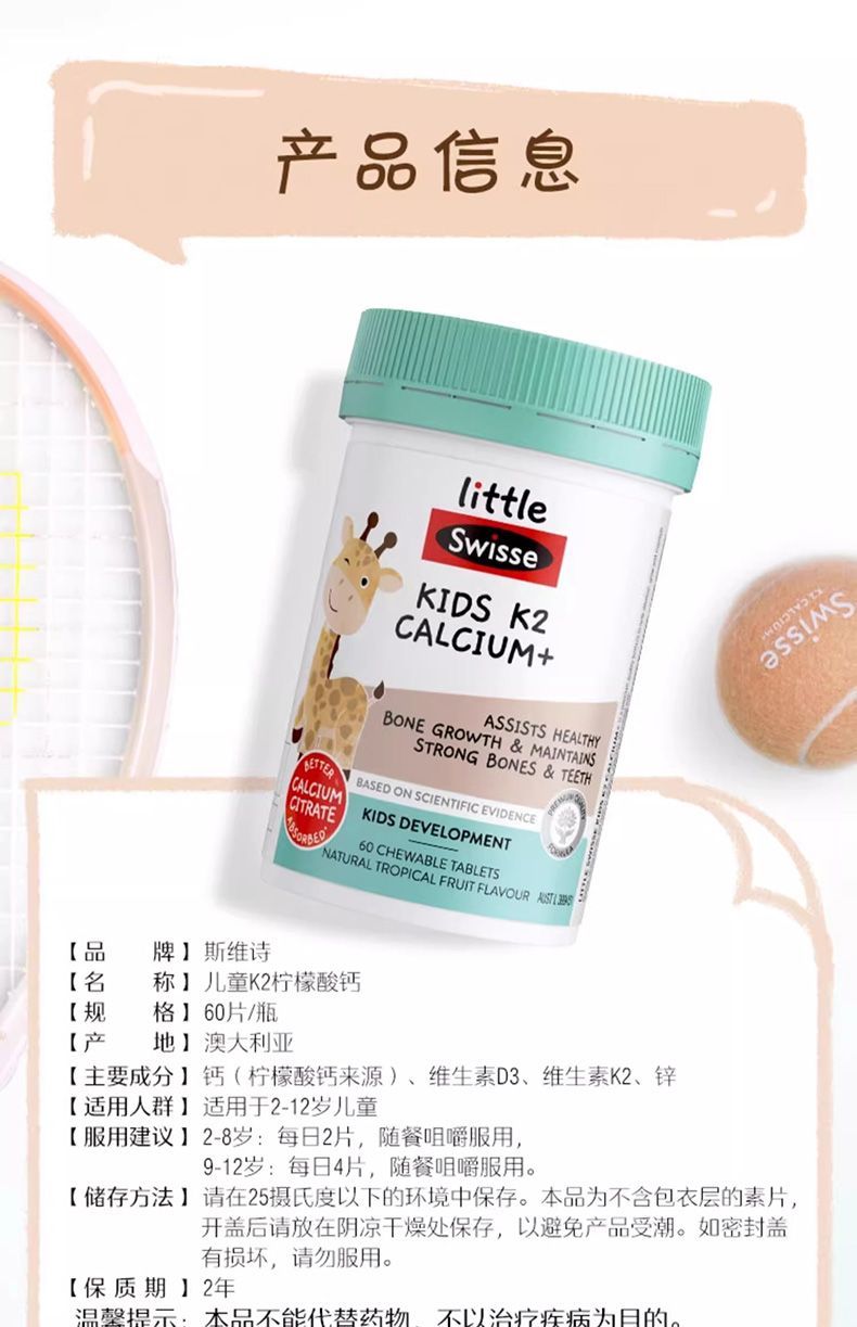 Swisse 斯维诗 儿童K2柠檬酸钙 60片【2026.10】