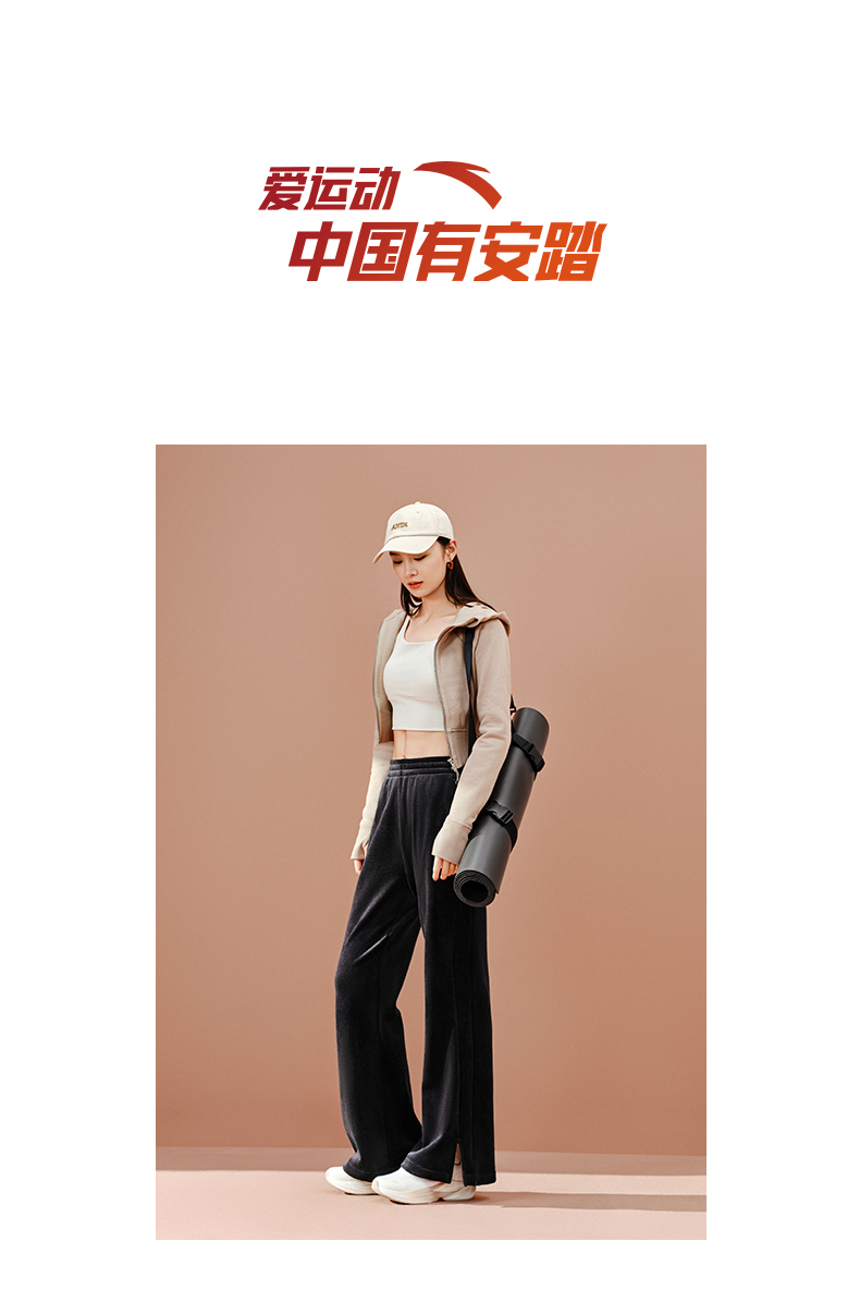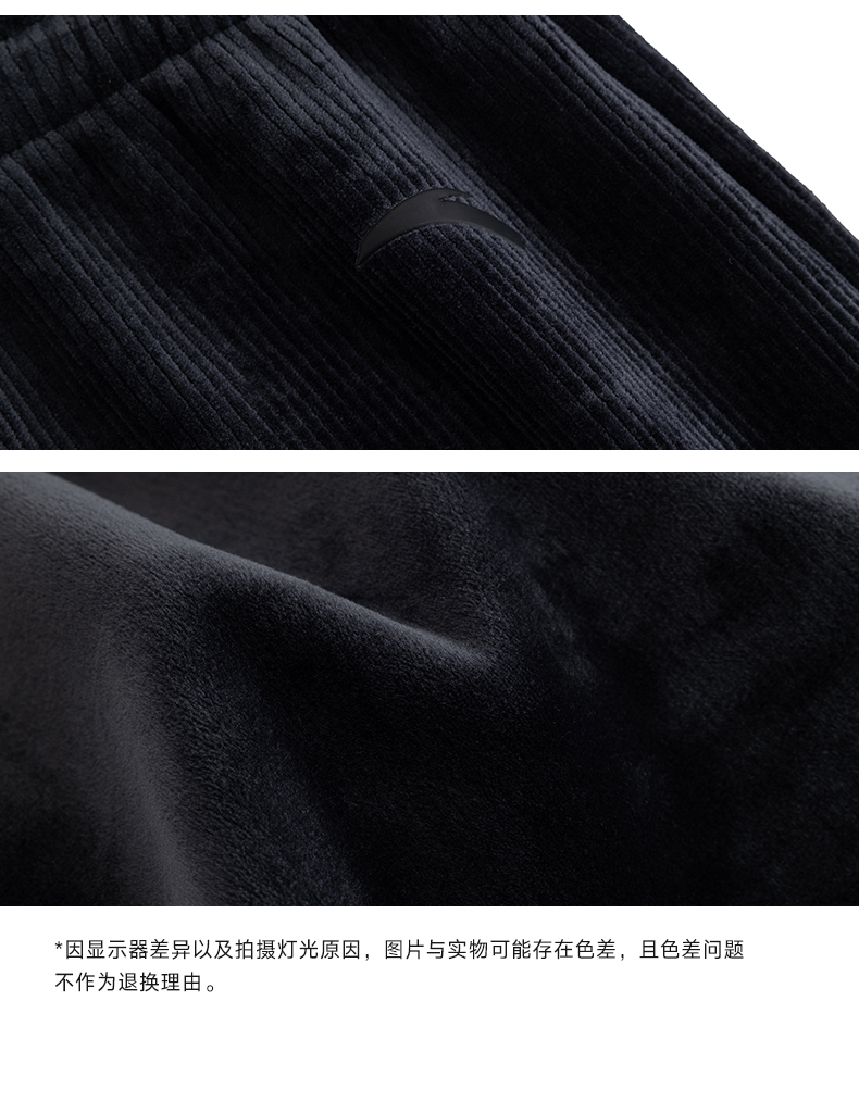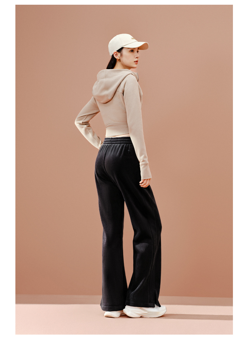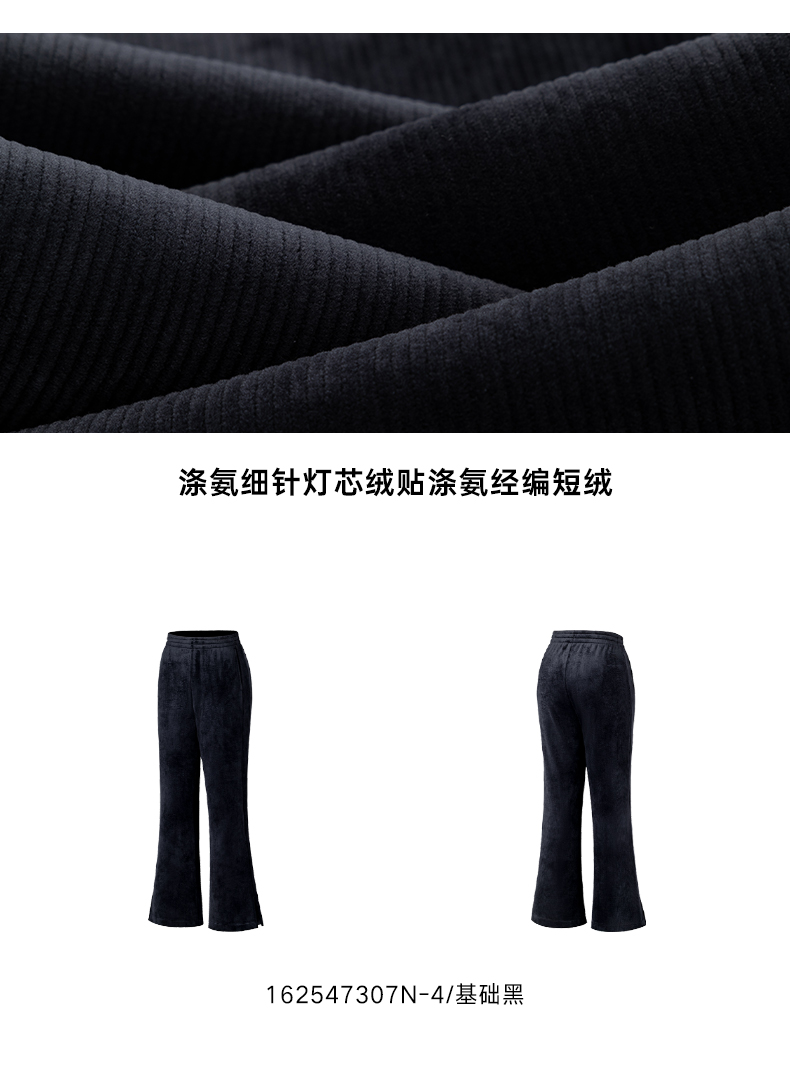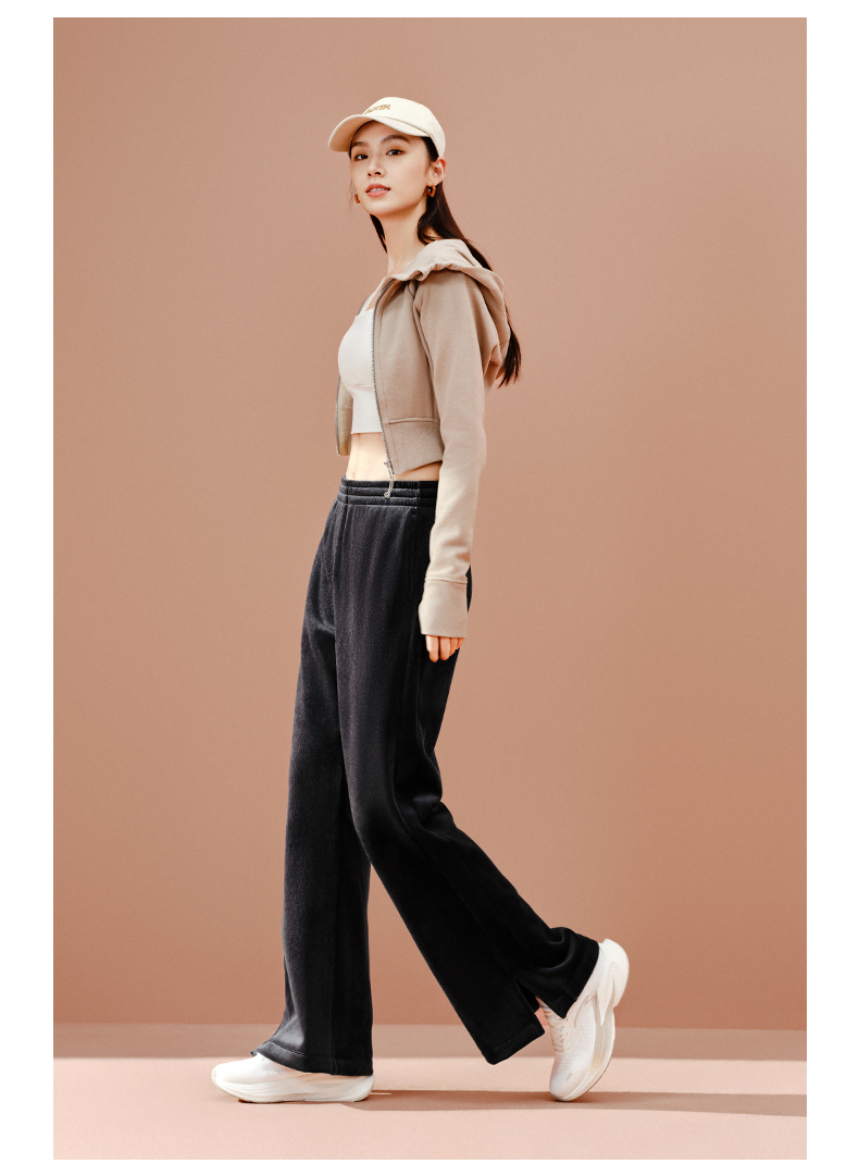 安踏灯芯绒阔腿裤女士冬季新款高腰垂感直筒休闲长裤子162547307N