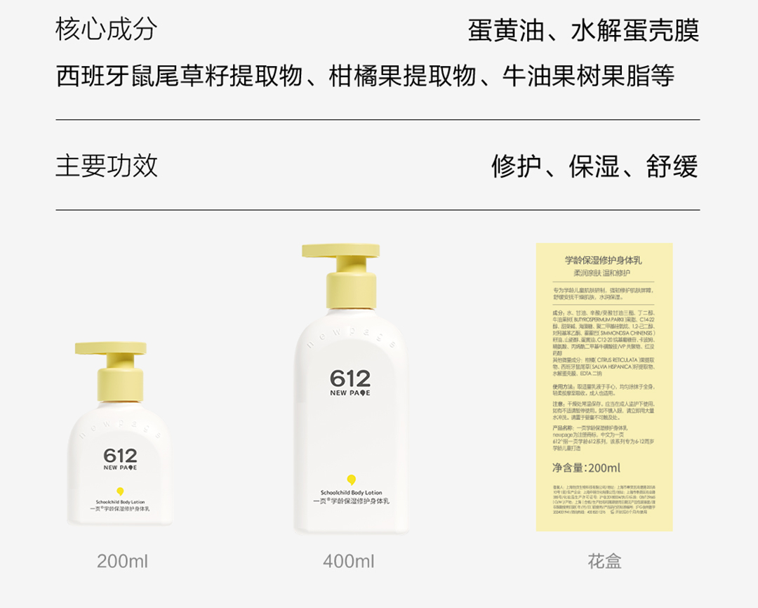 【 每满300-40】newpage一页612学龄修护保湿身体乳儿童四季保湿滋润