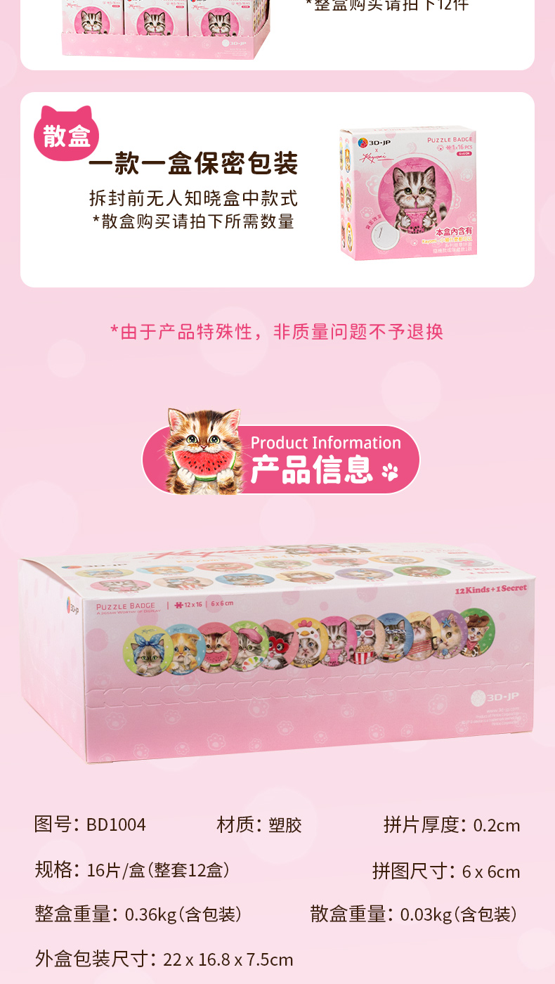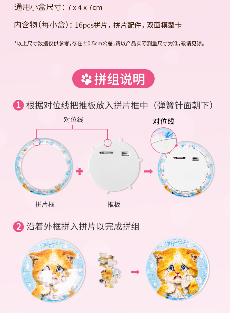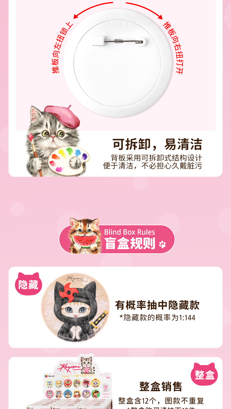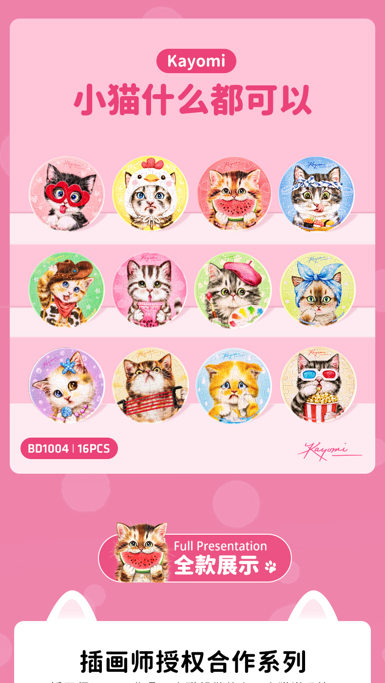 16片盲盒拼图塑料徽章拼图 BD1004 Kayomi-小猫什么都可以系列