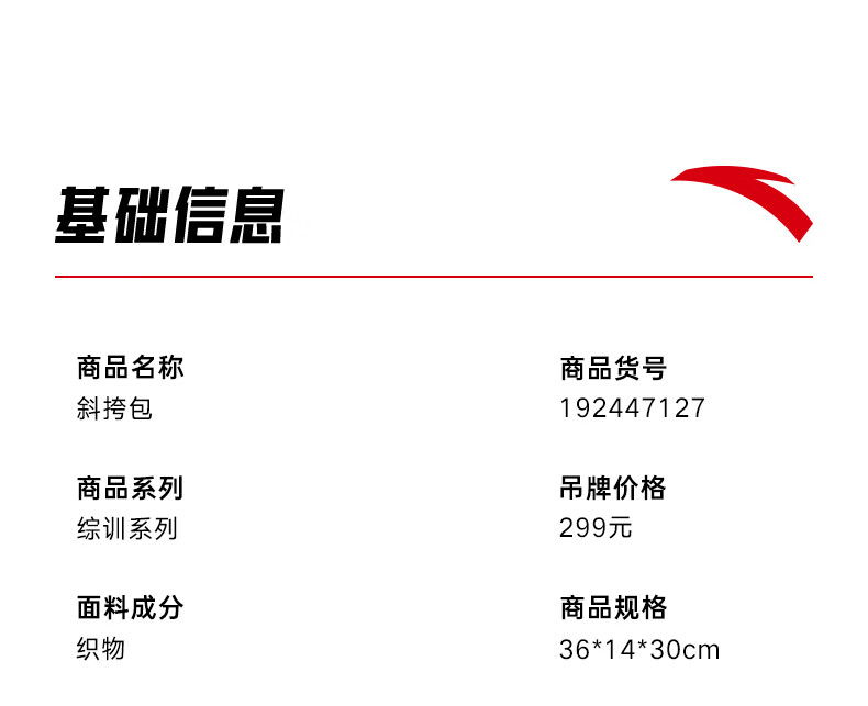 安踏OUTDOOR运动斜挎包日常通勤简约百搭192447127