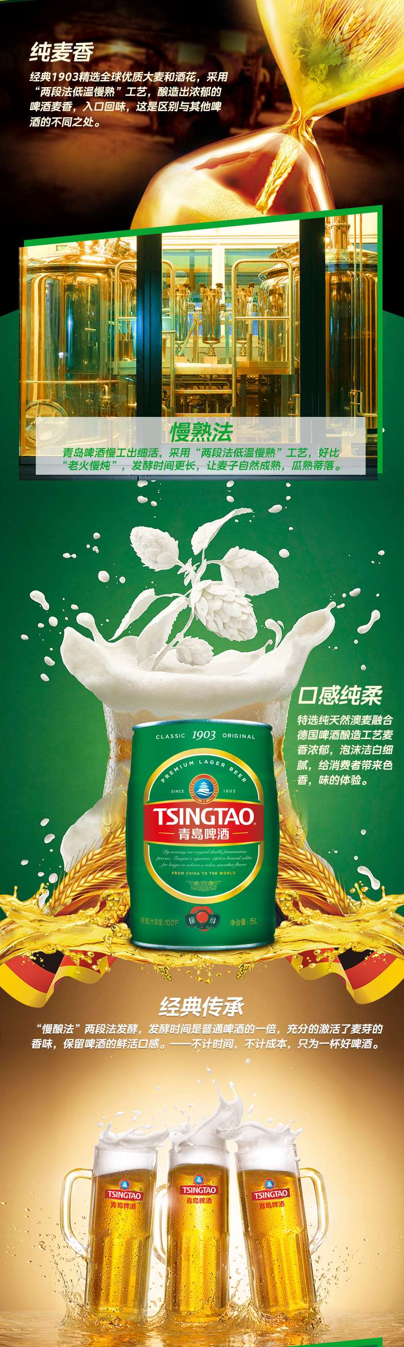 青岛啤酒(TsingTao)经典1903 10度5L*1桶(一厂产) 绿桶装