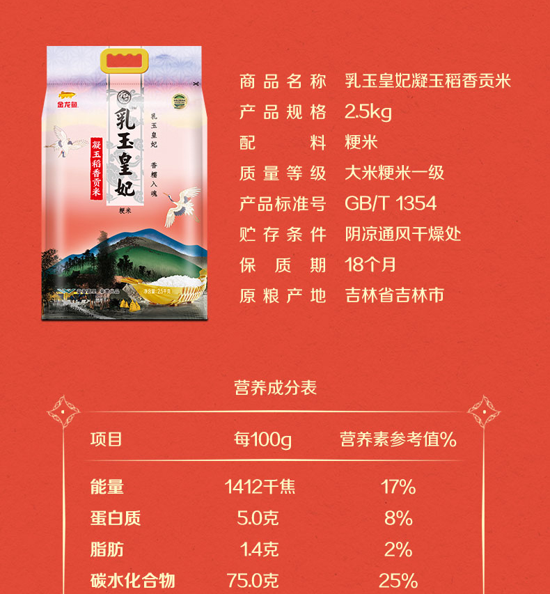 金龙鱼乳玉皇妃凝玉稻香贡米2.5kg 1袋