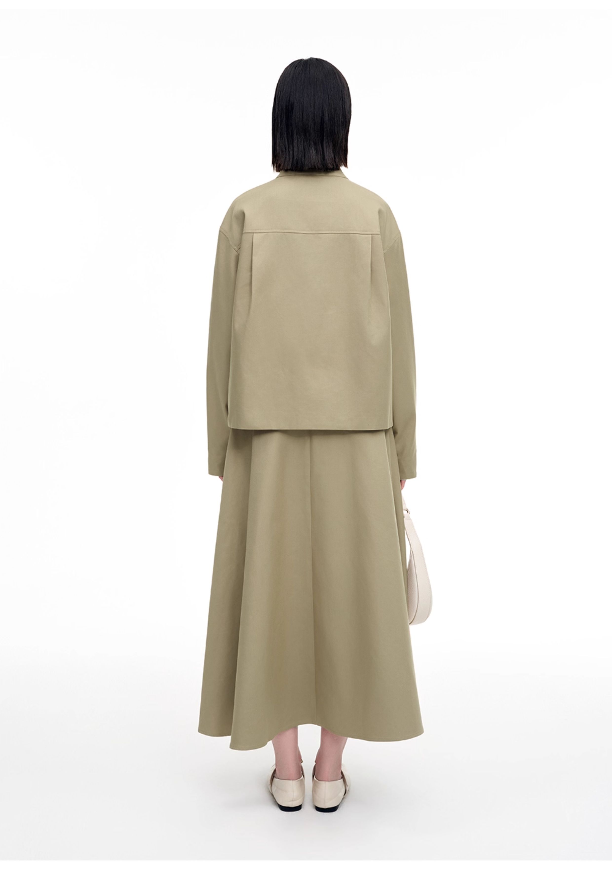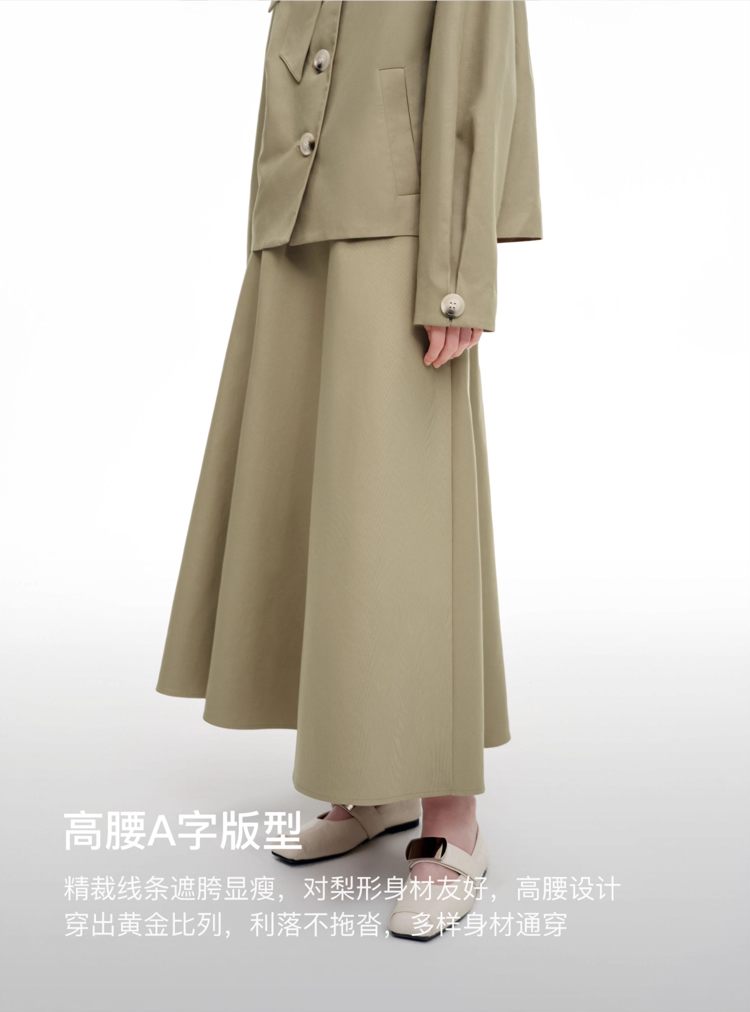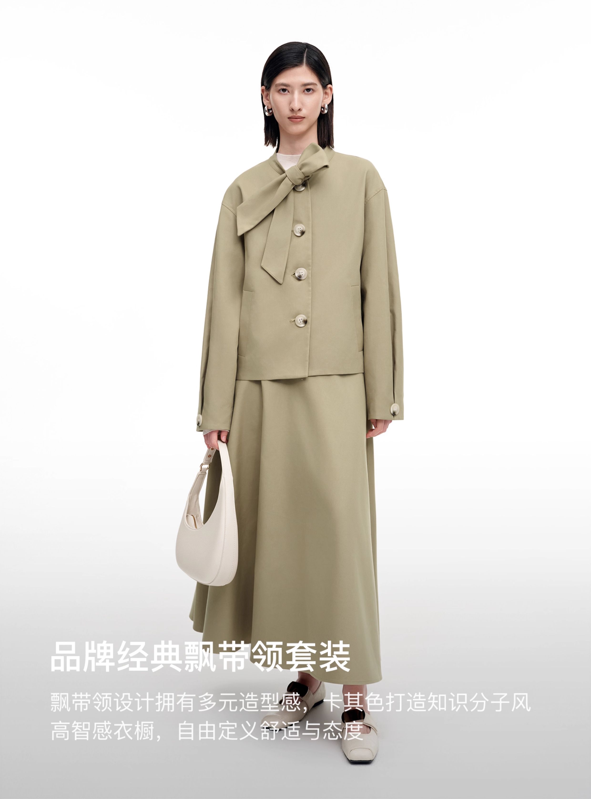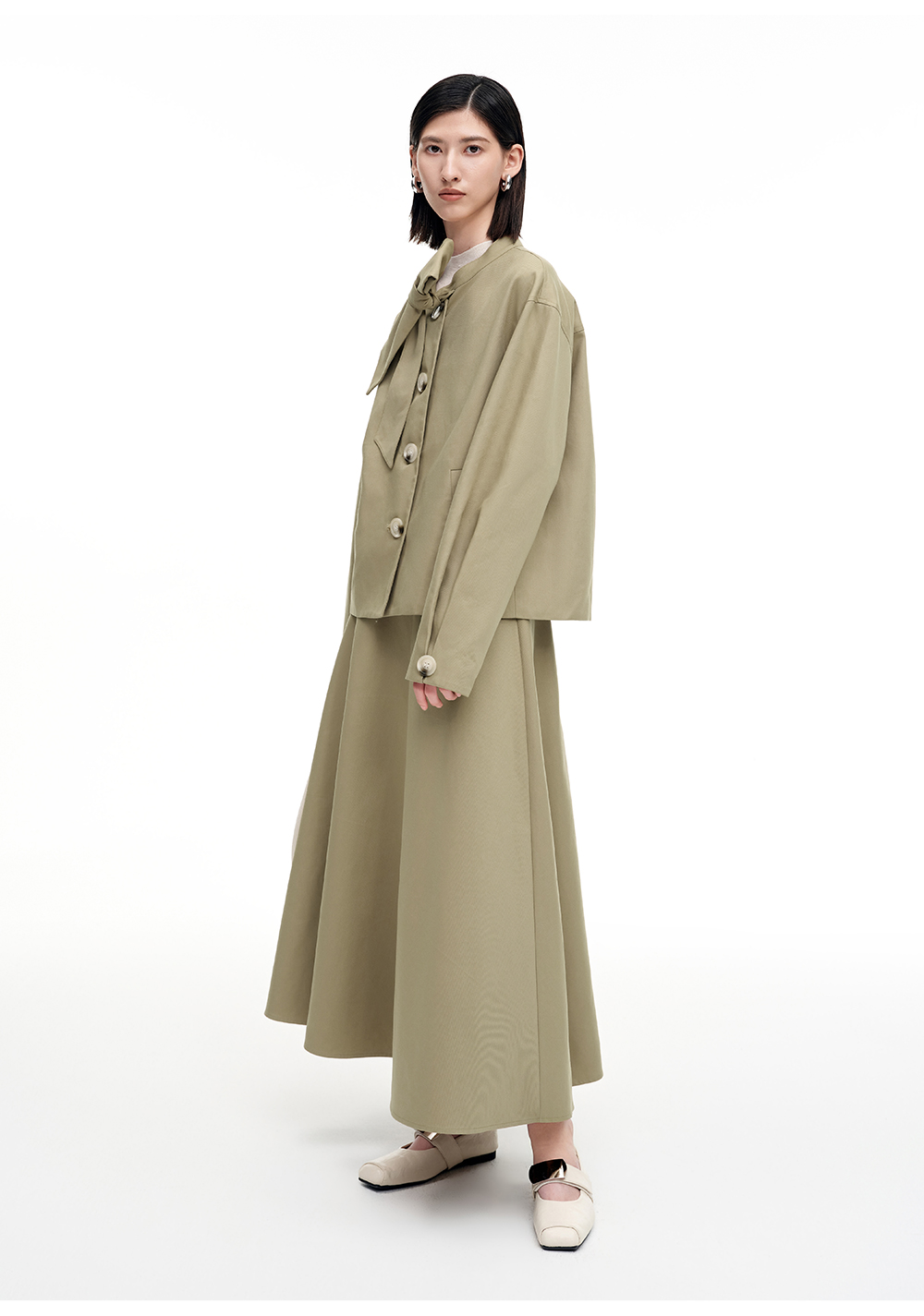 SELFWHO棉混纺卡其色飘带风衣外套女2025秋新款宽松显瘦百搭外套