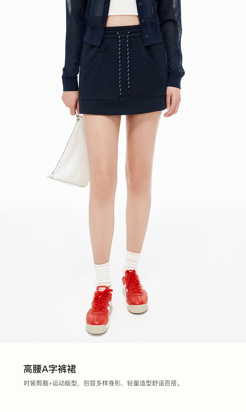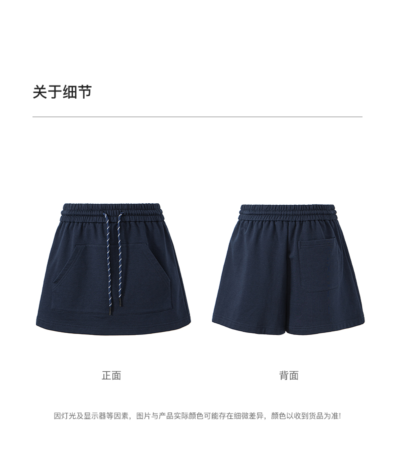SELFWHO精梳棉宝蓝色短裤女2025夏新款抽绳松紧腰高腰A字运动裤裙