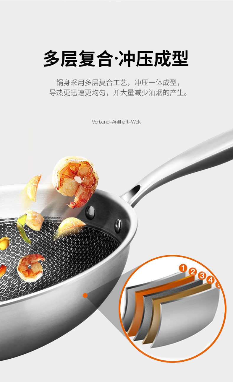 康巴赫(KBH)蜂窝不锈钢炒锅CFC32A1 32cm