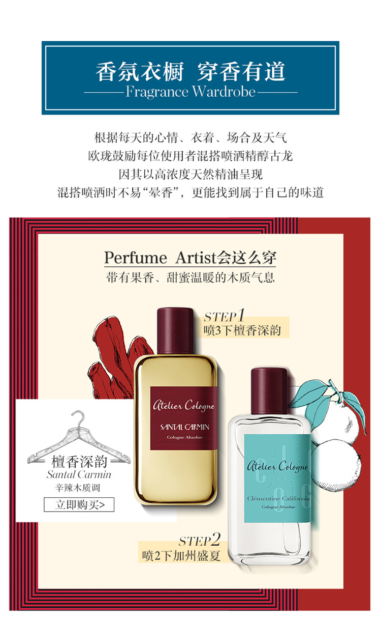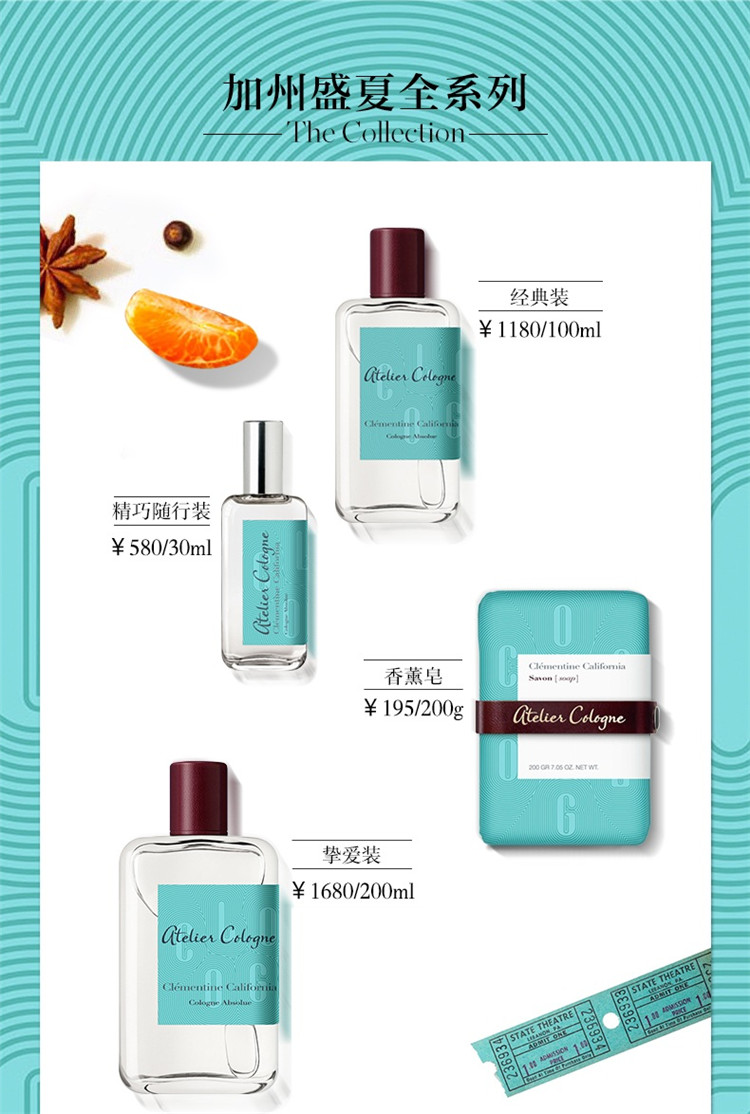 ATELIER COLOGNE欧珑加州盛夏香水30ml/100ML 精醇古龙男士香水 女士淡香 中性香水