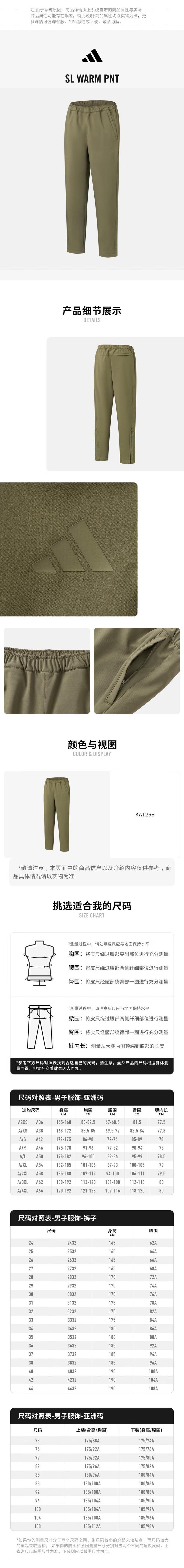 adidas阿迪达斯 男梭织长裤-加绒 KA1299