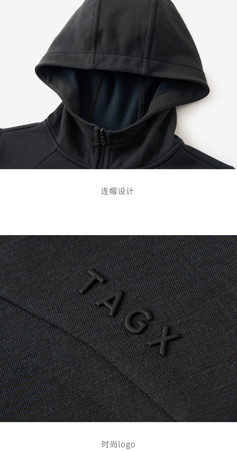 TAGX探观抓绒外套男女款2025年新款纯色保暖抑菌户外连帽拉链上衣