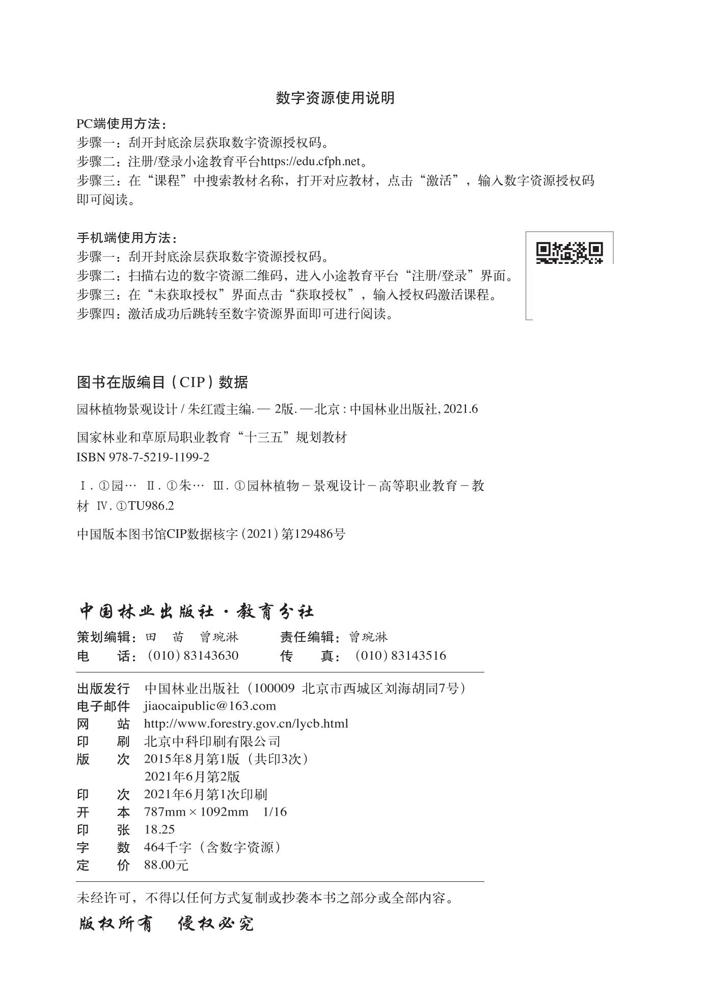 园林植物景观设计 第2版 朱红霞 国家林业和草原局职业教育十三五规划教材 1199 中国林业出版社