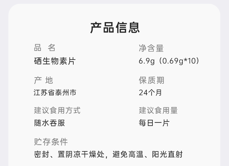 【随心配】菌小宝硒生物素片(10片/瓶)*5瓶