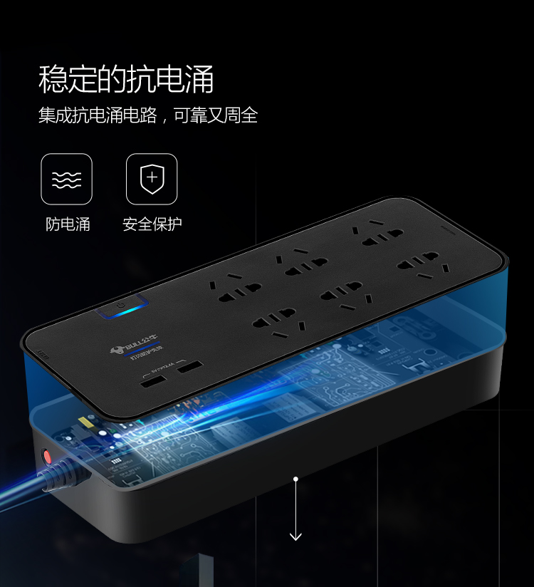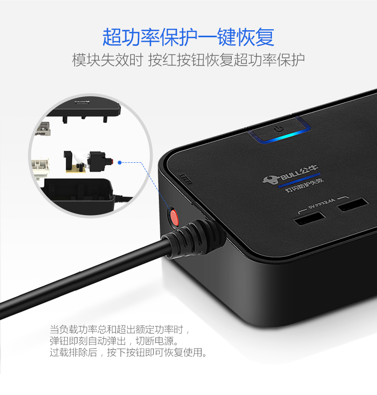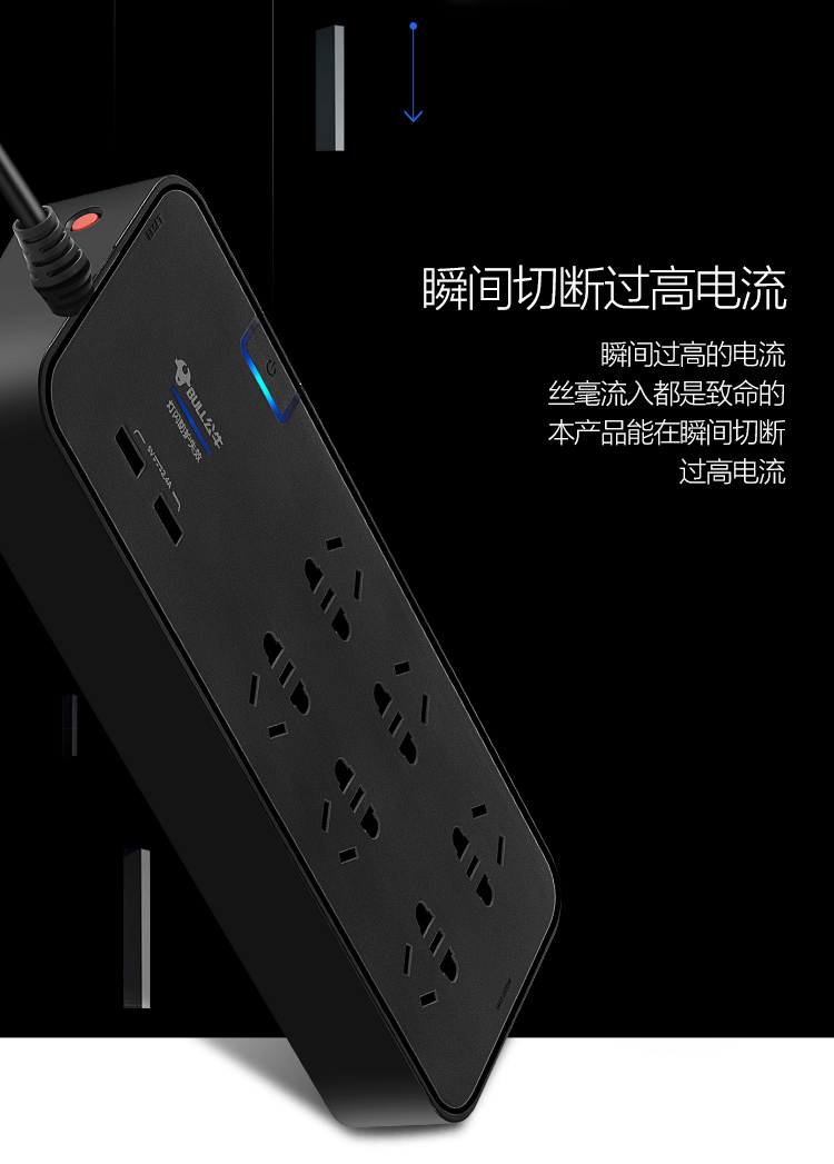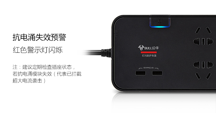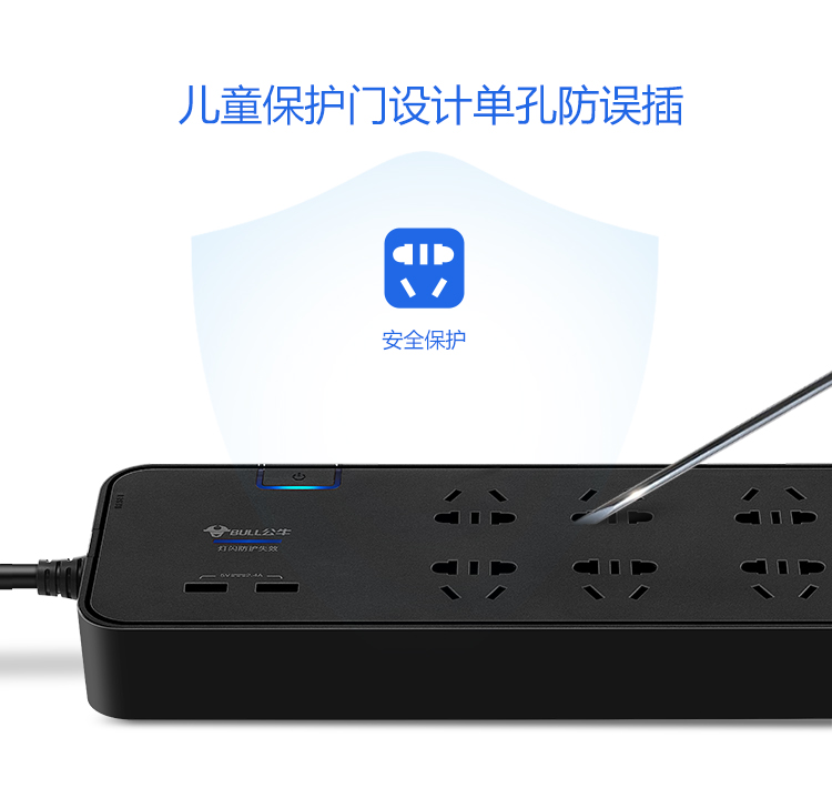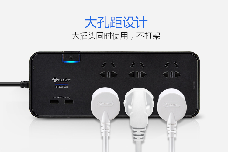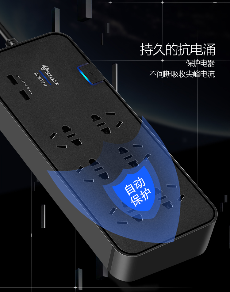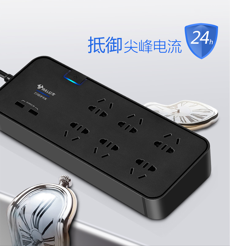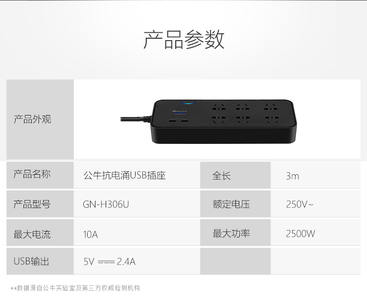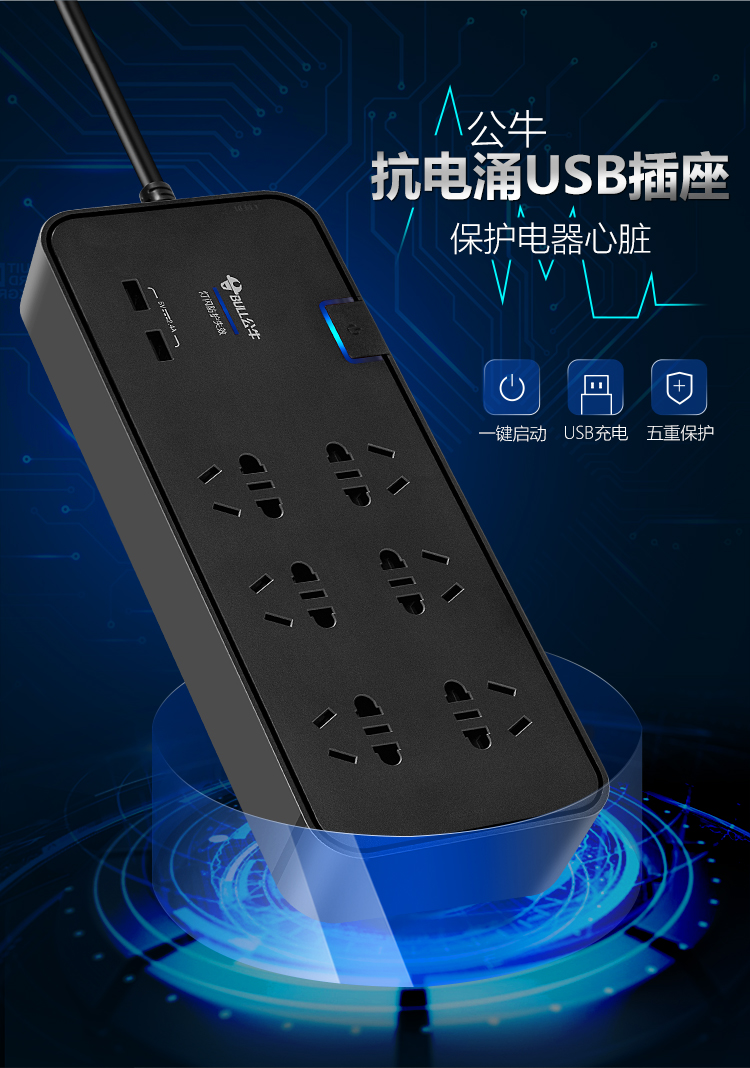 公牛 抗电涌抗浪涌插座/插线板/插排/排插/接线板/拖线板 6位+2USB总控全长3米 GN-H306U