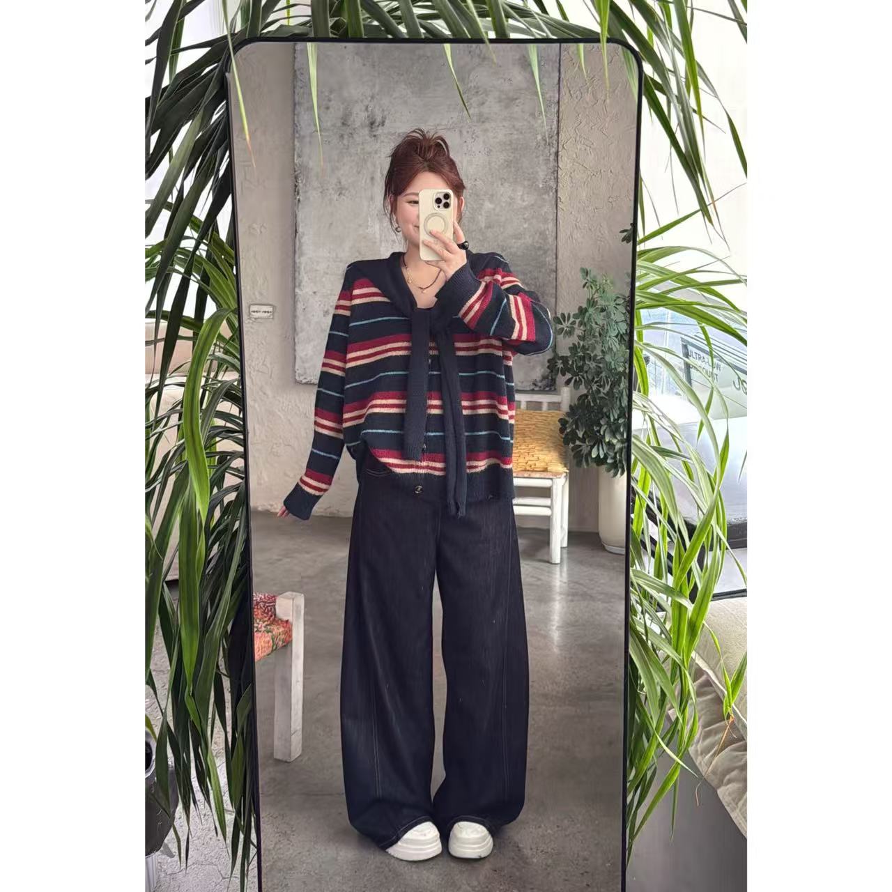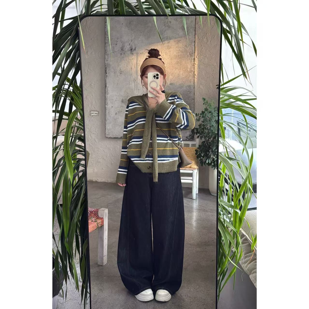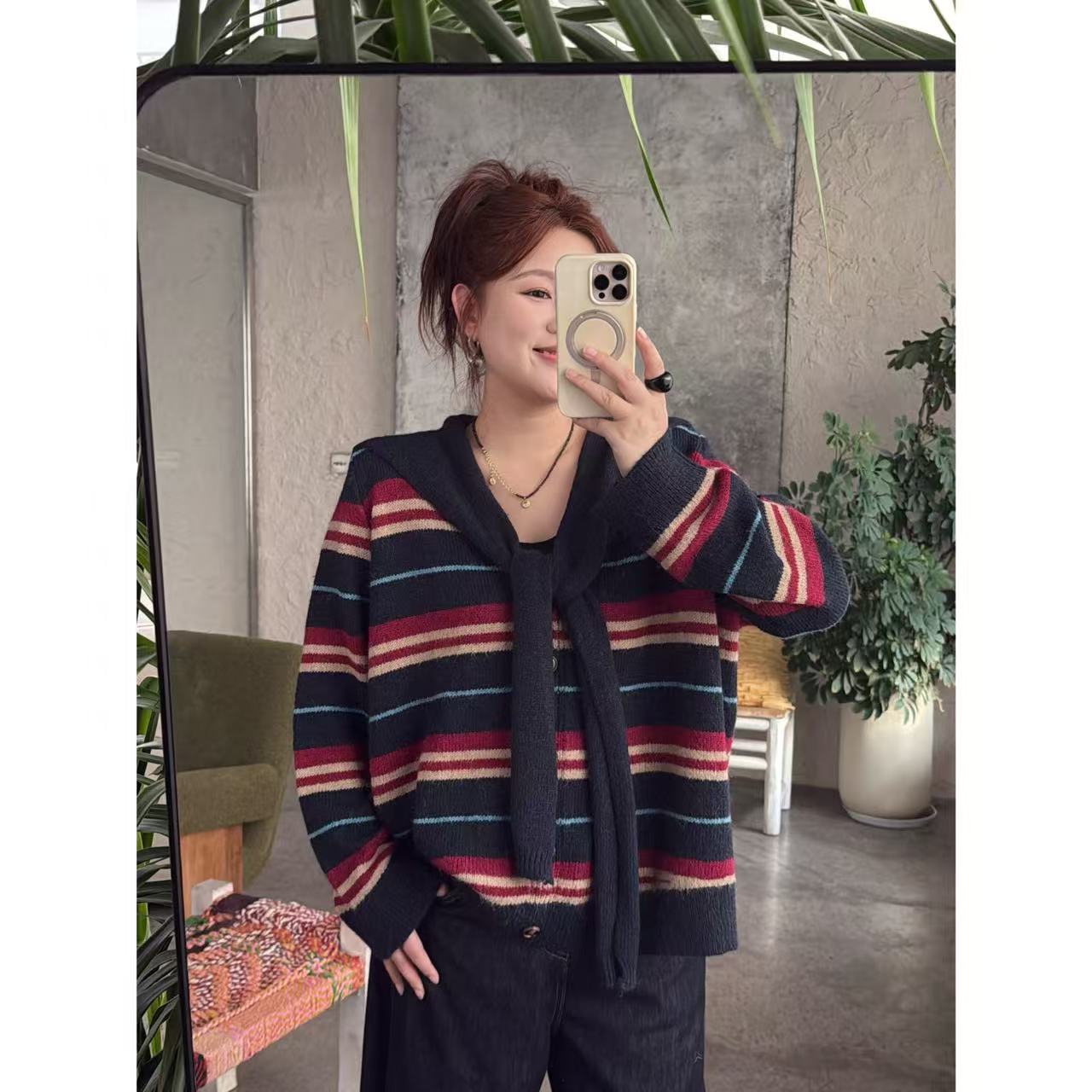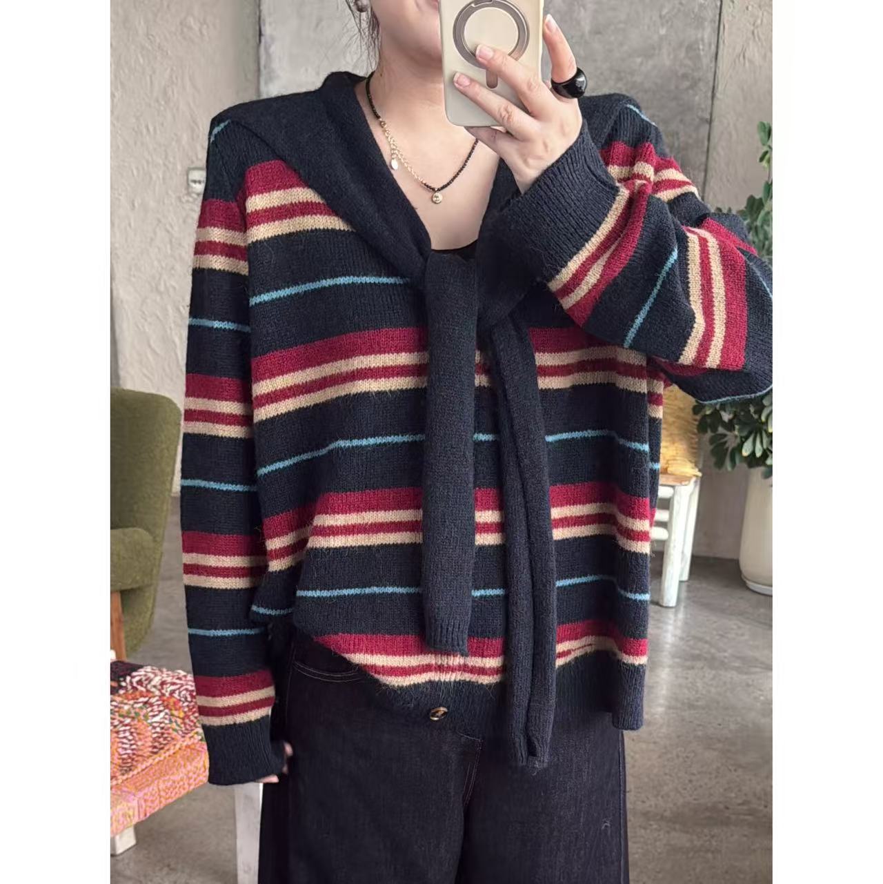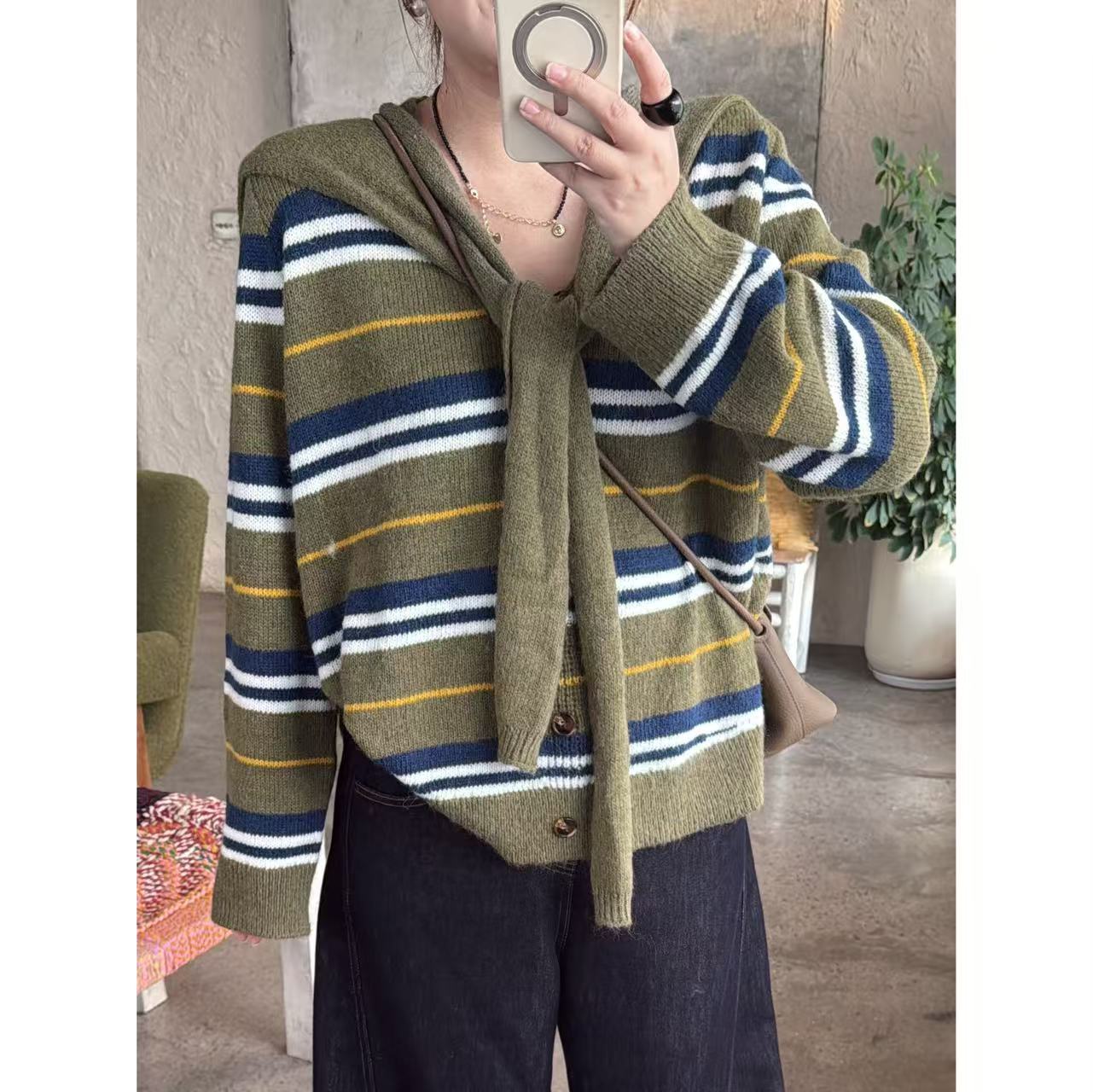25AW上新 佳佳同款【绿野寻踪】带披肩设计感条纹纽扣套头毛衣针织时尚休闲