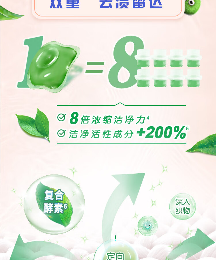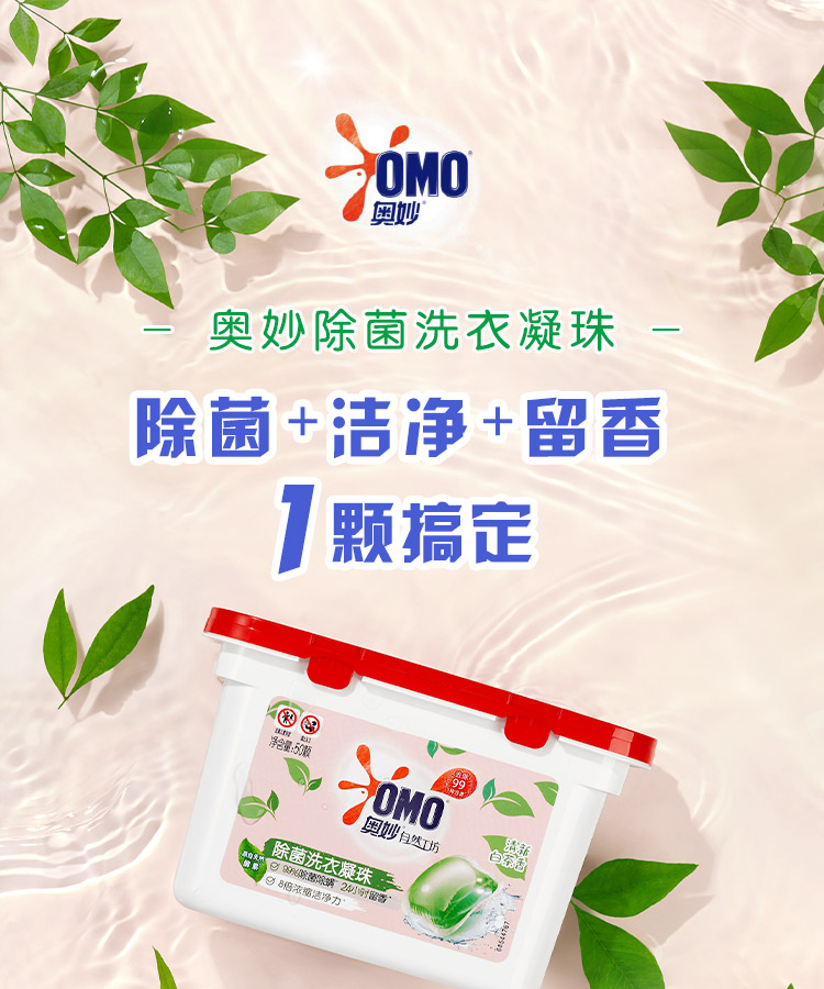 奥妙自然工坊除菌洗衣凝珠清新白茶香400g(50颗)