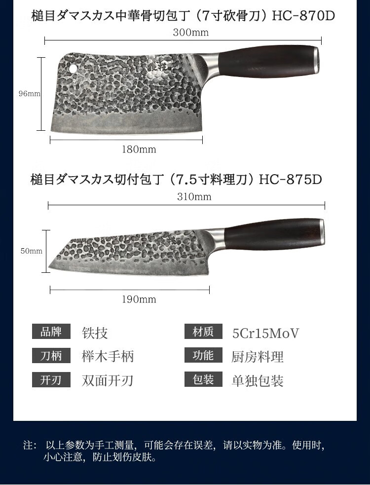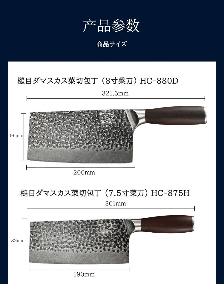 日本铁技菜刀7.5寸菜刀(中華菜切包丁)HC-875H