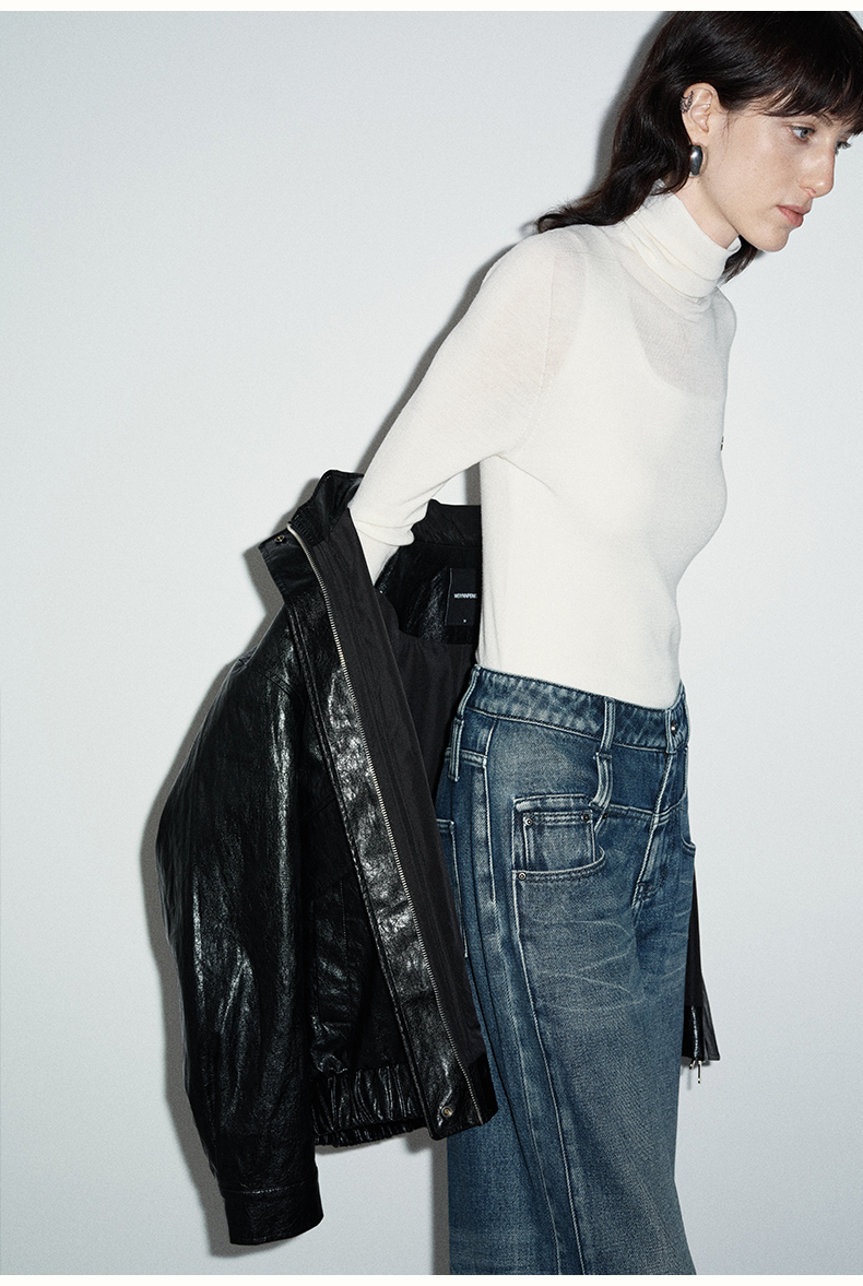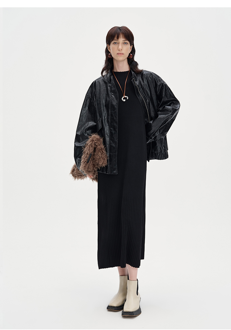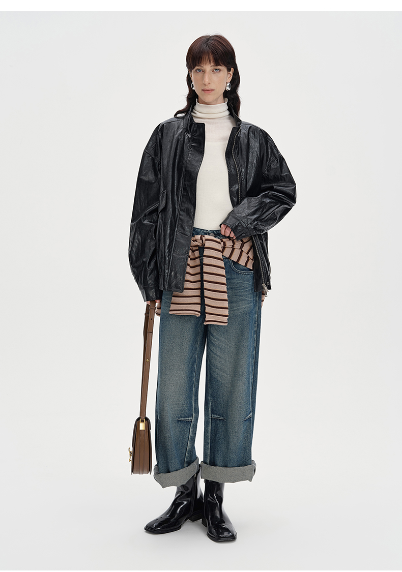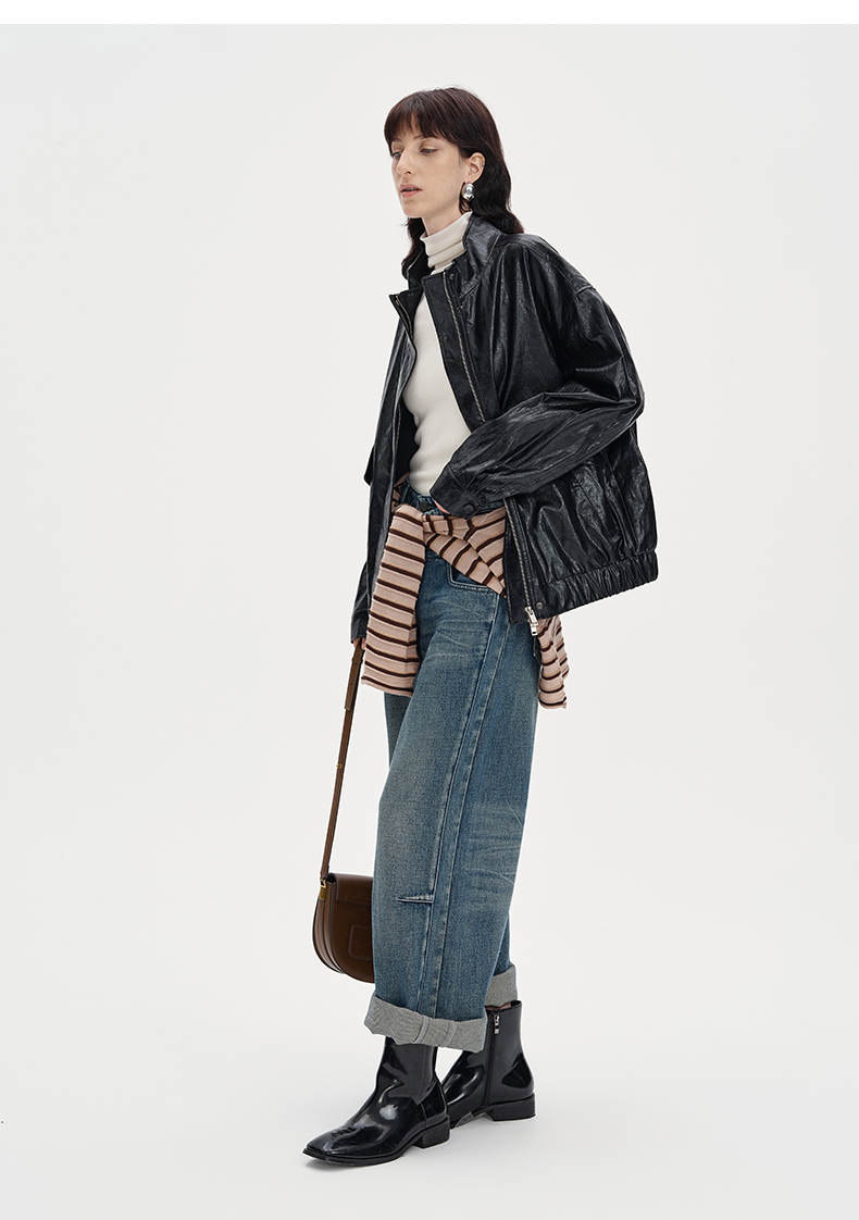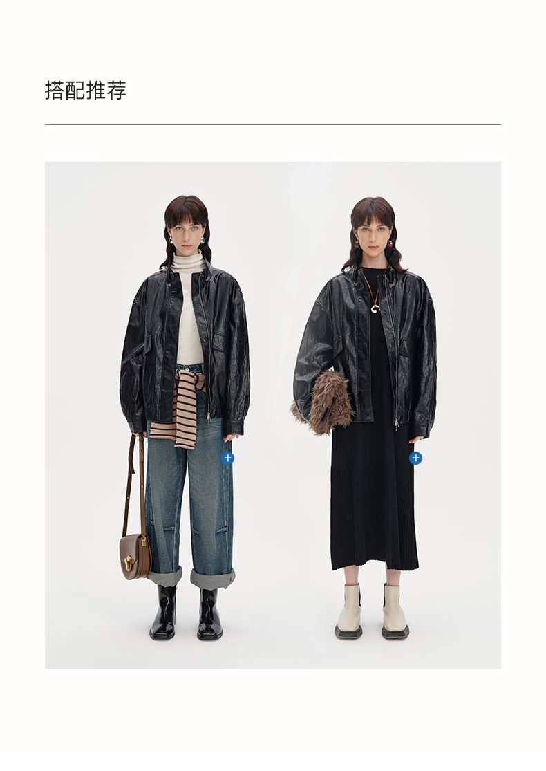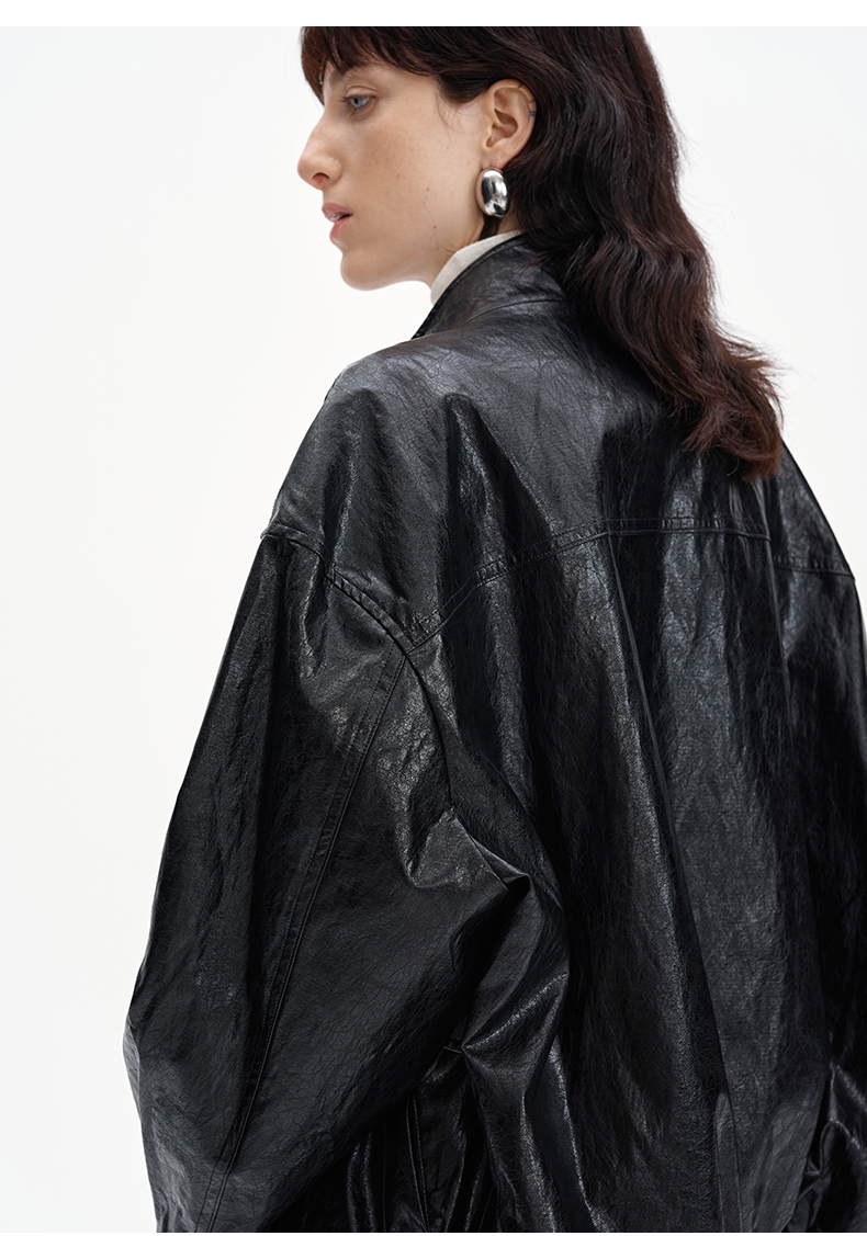SELFWHO复古美式黑色pu皮衣外套女2024秋季新款小个子设计感夹克