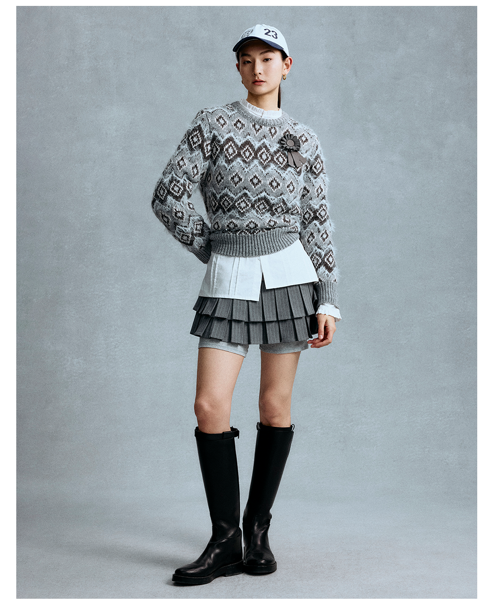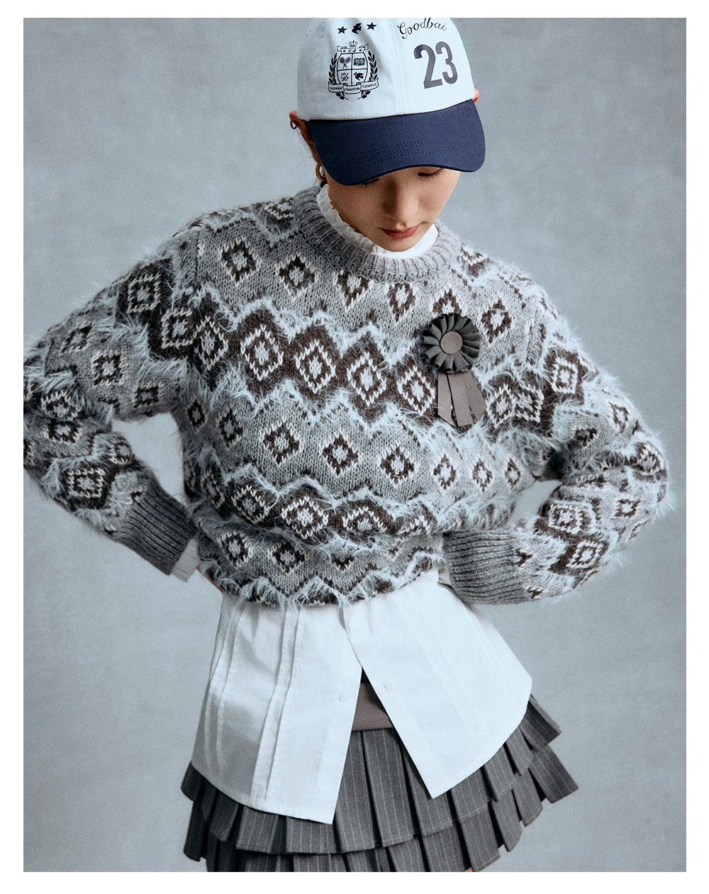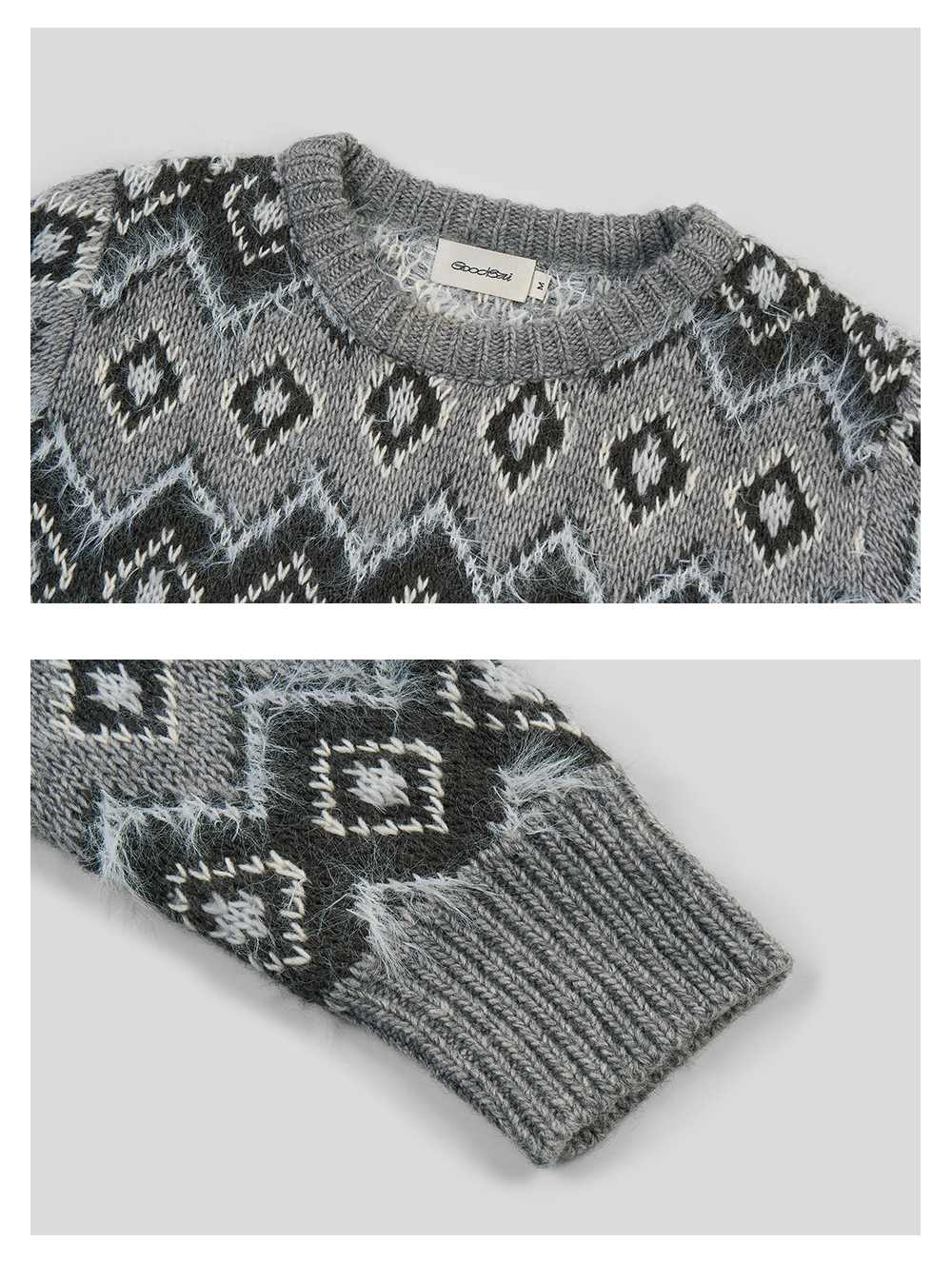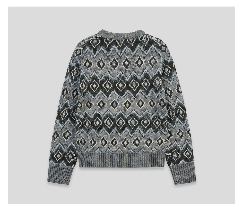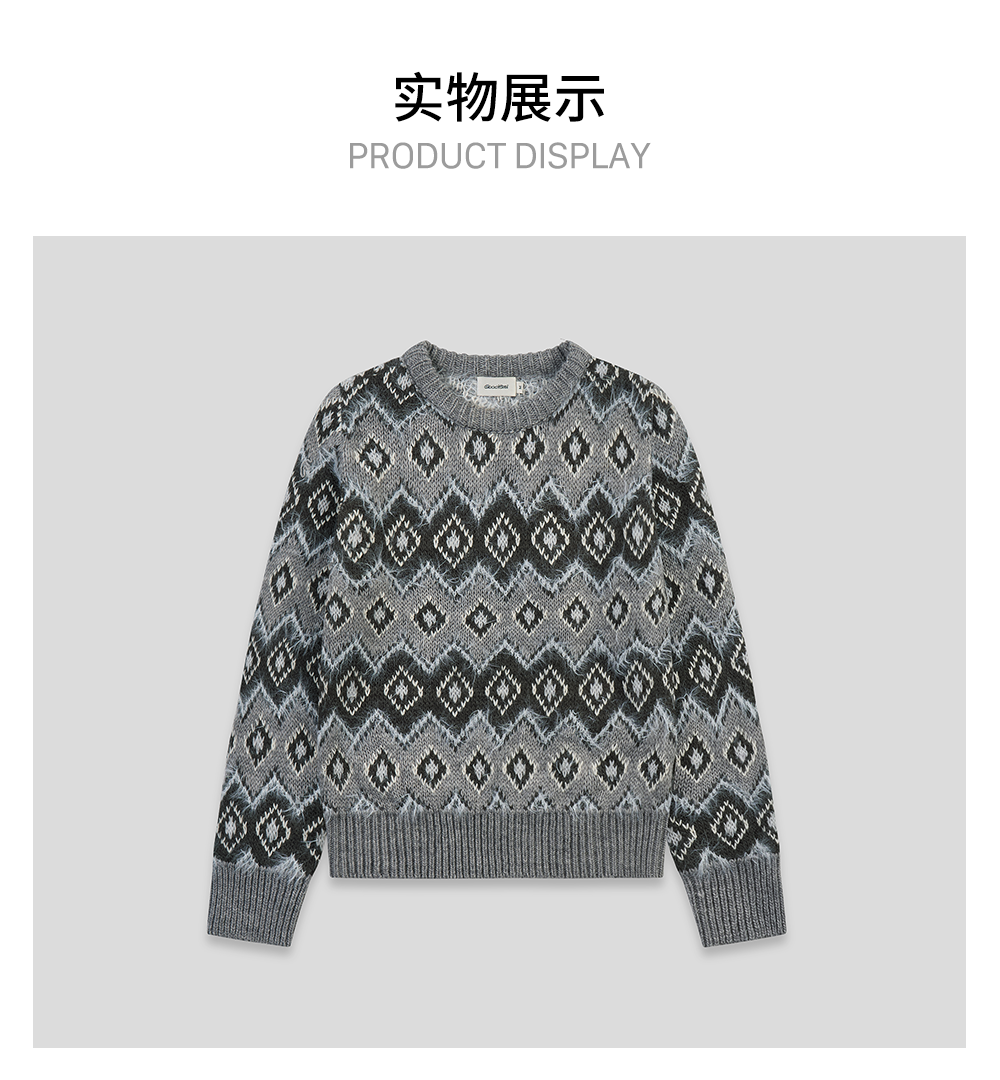 GOODBAI 冬季新款菱格纹老花圆领保暖毛衣