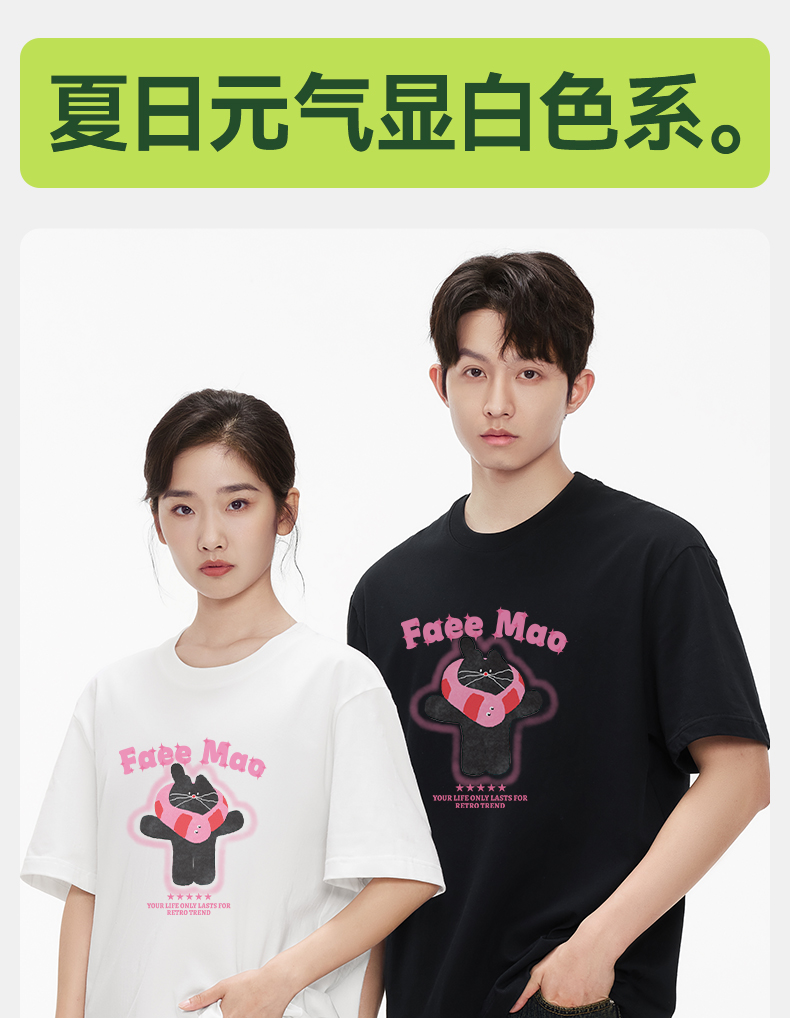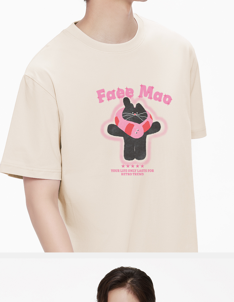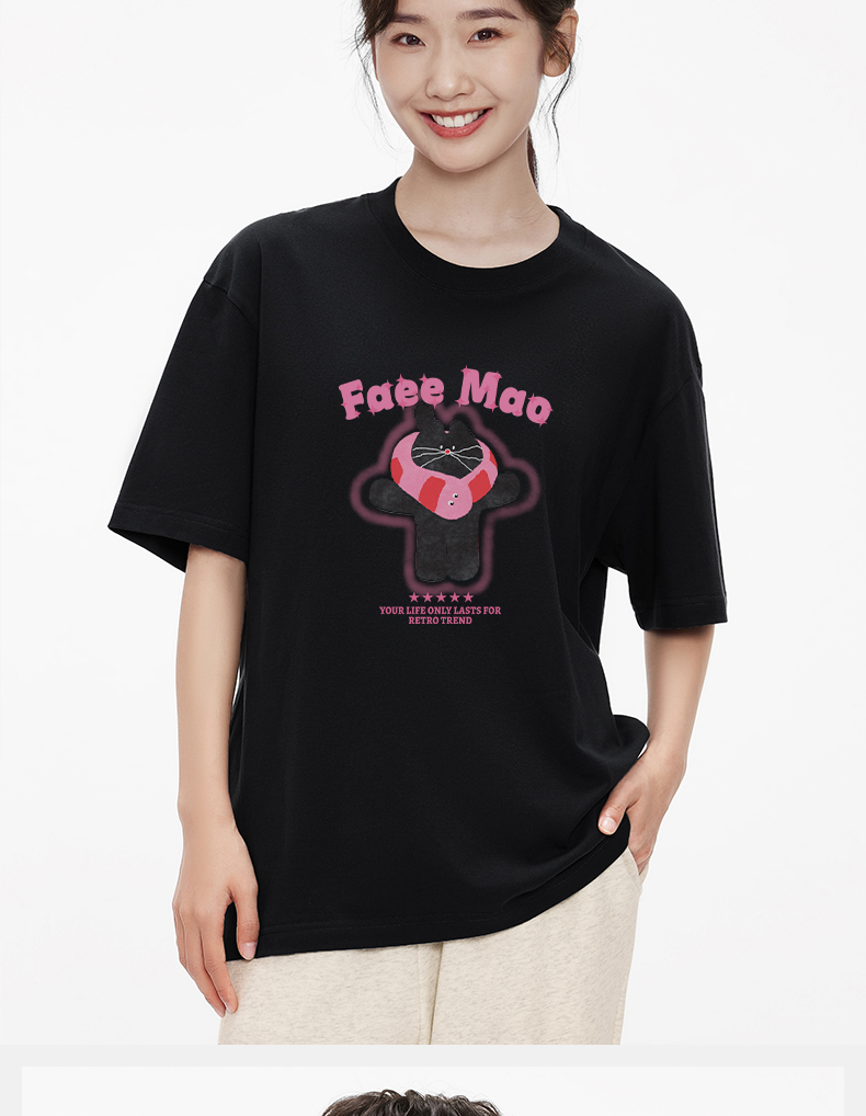 「棉的美学」个性街头休闲T恤小众童趣小猫印花宽松百搭半袖上衣