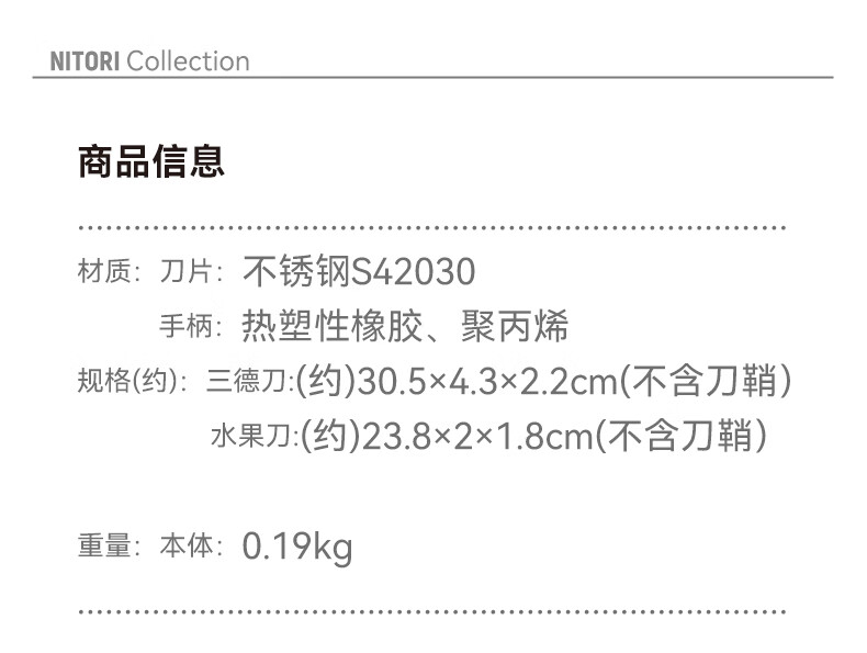 NITORI宜得利家居 带刀鞘刀具2件套SH03不锈钢刀