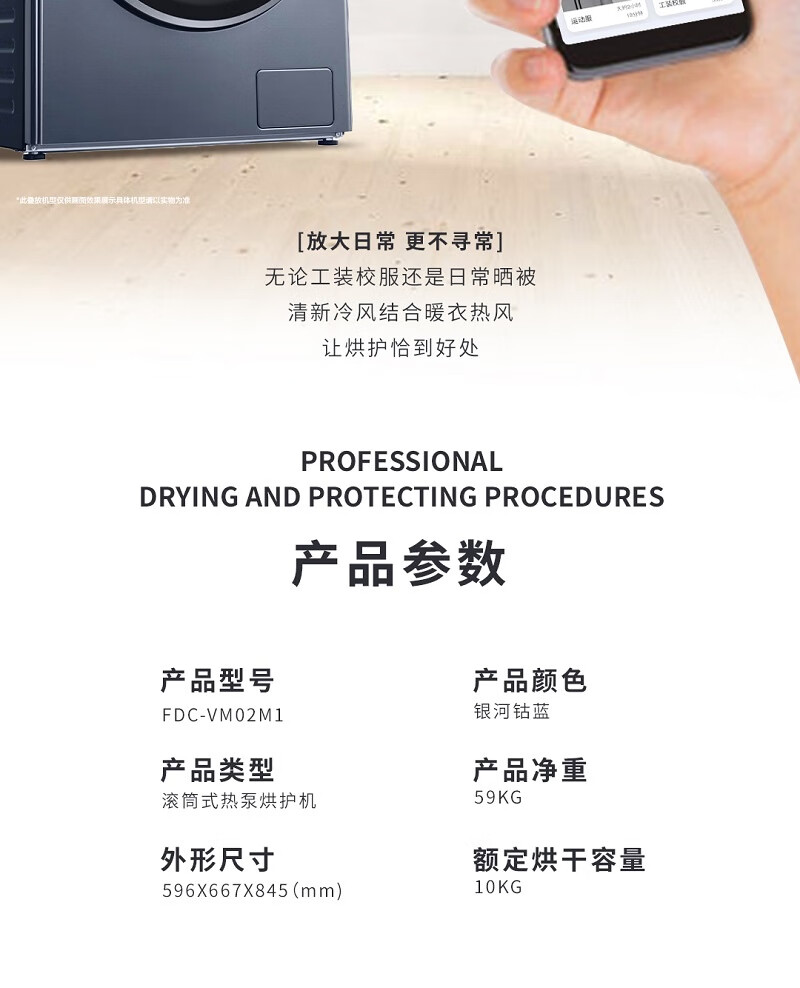 松下(Panasonic)Panasonic全新松下Venus(纤镜)系列烘护机FDC-VM02M1银河钴蓝 原生及护衣 包豪斯设计