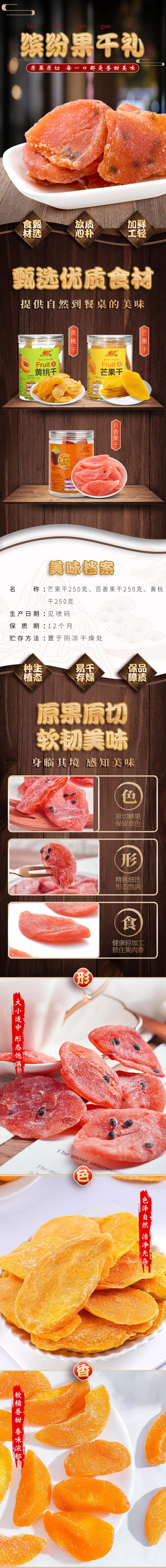 【山鸿】凯宇山鸿缤纷果干礼(250g芒果干、250g百香果干、250g黄桃干)