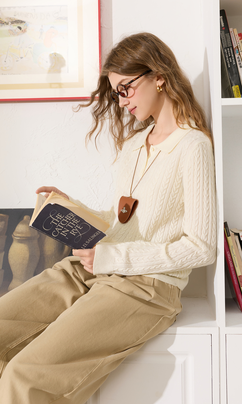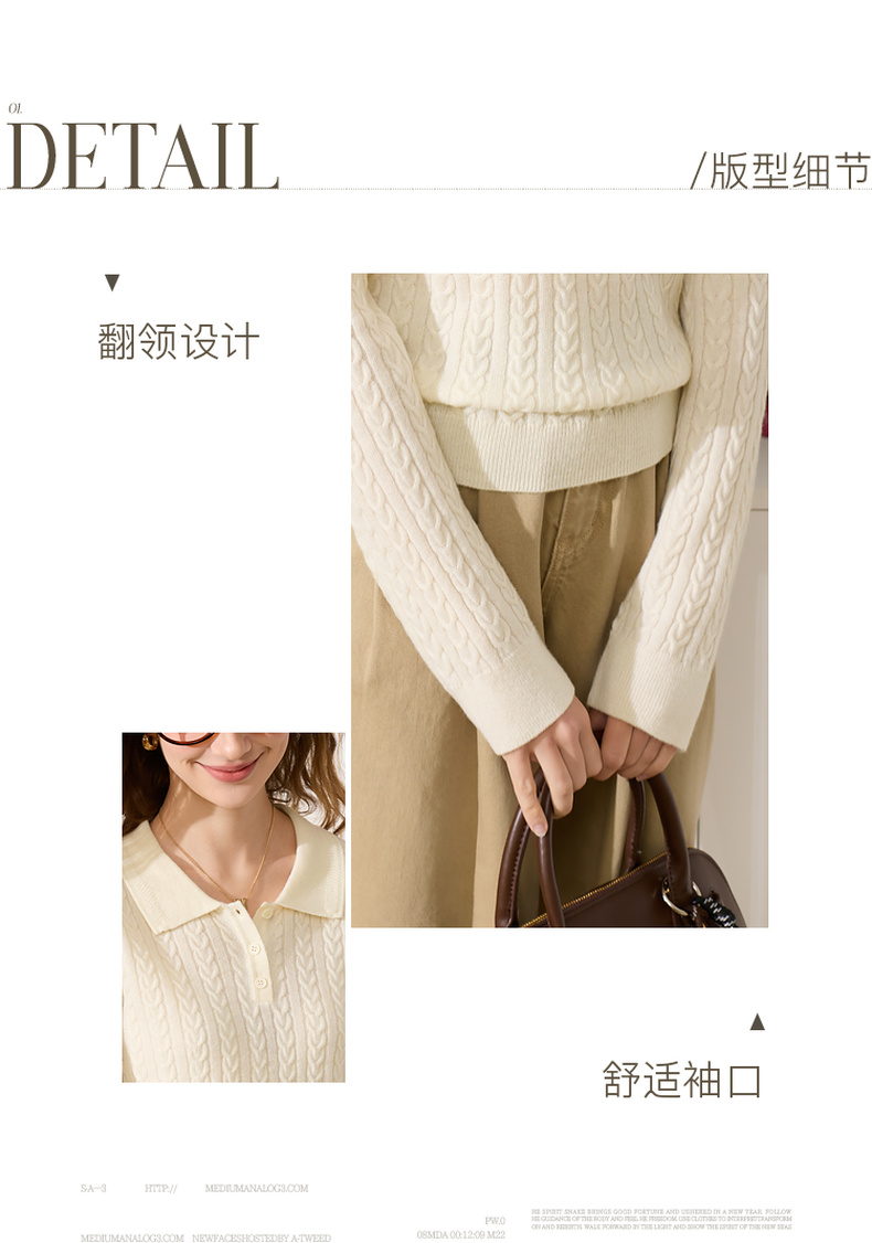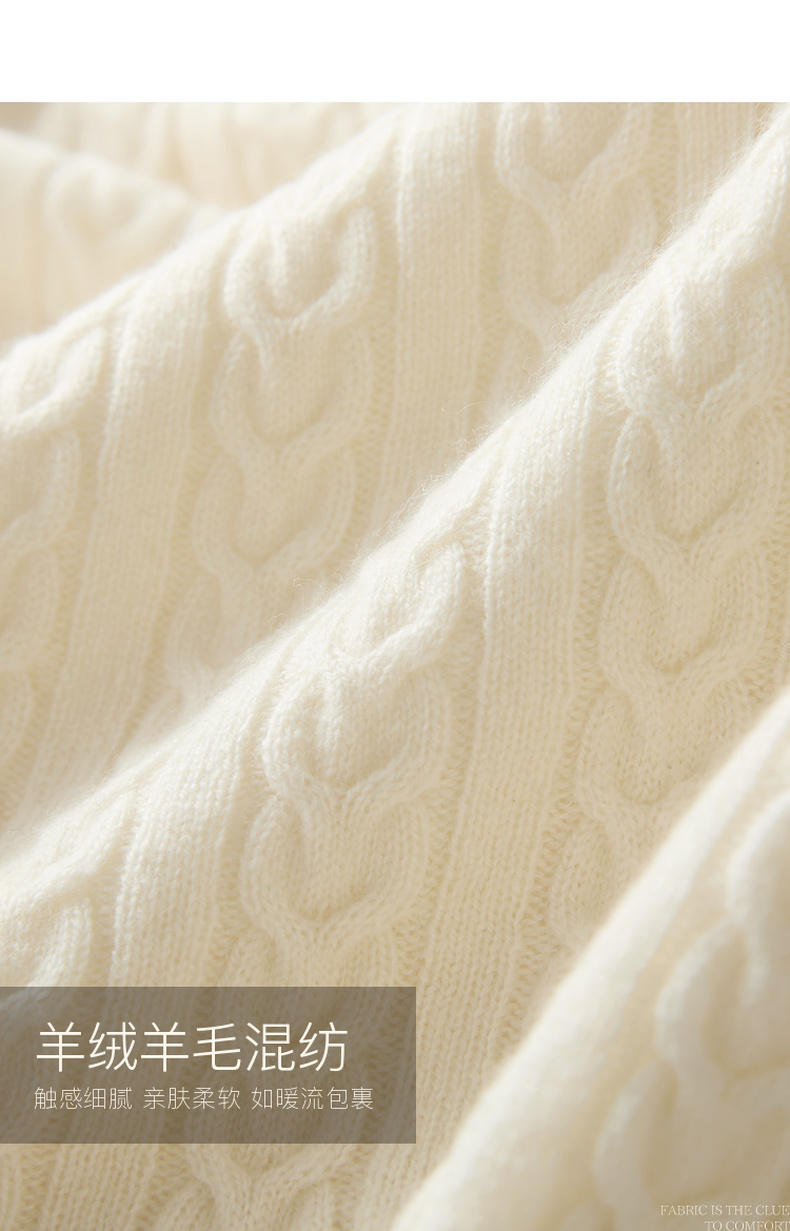 【绵羊毛】三彩2025冬季新款绞花针织衫翻领毛衫套头简约M