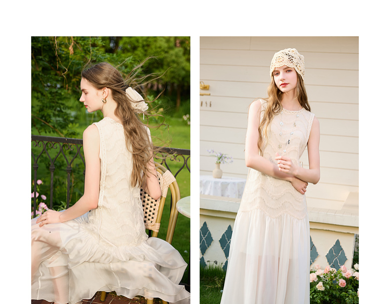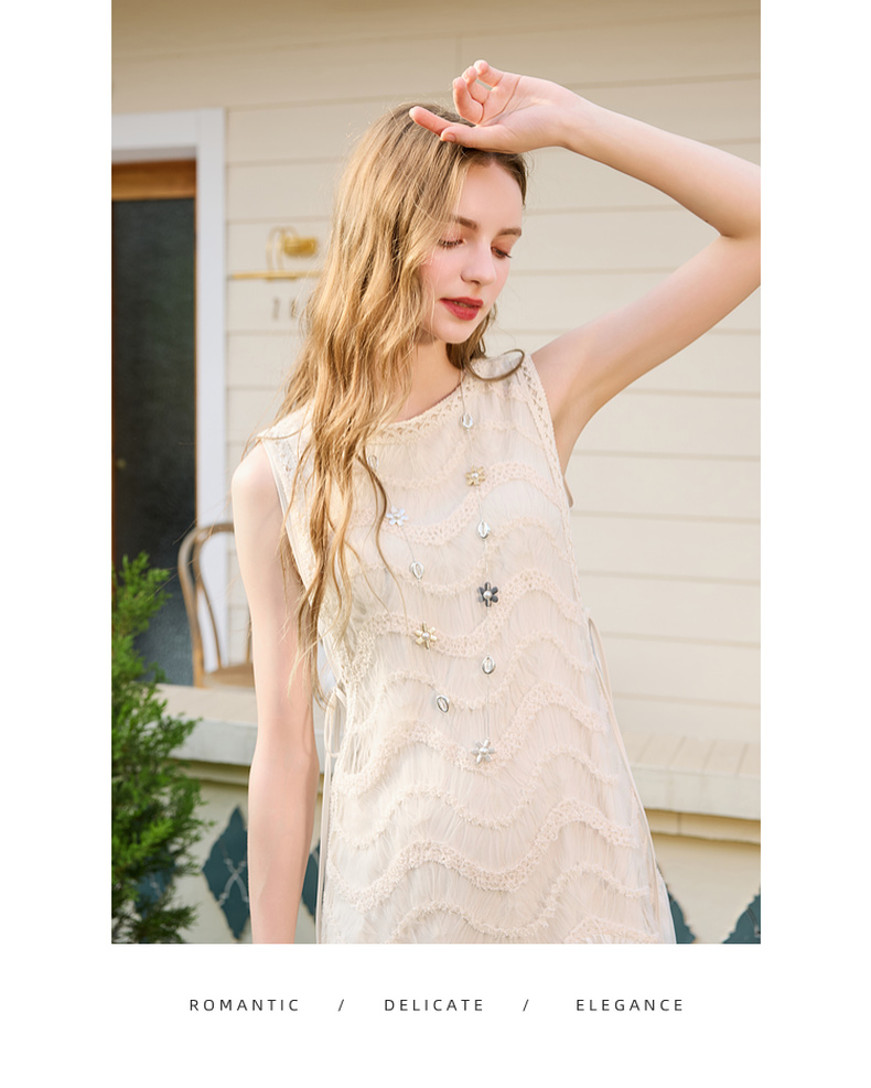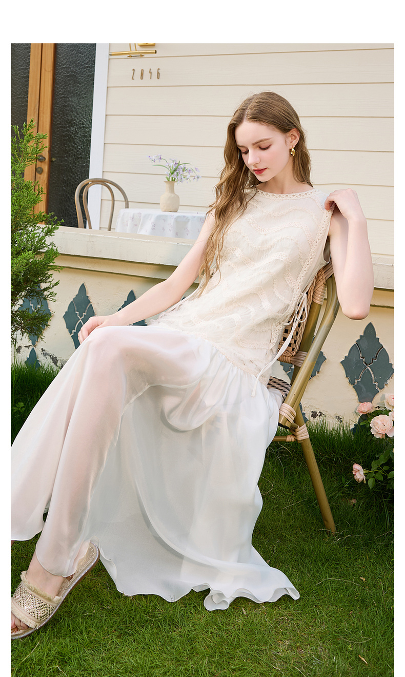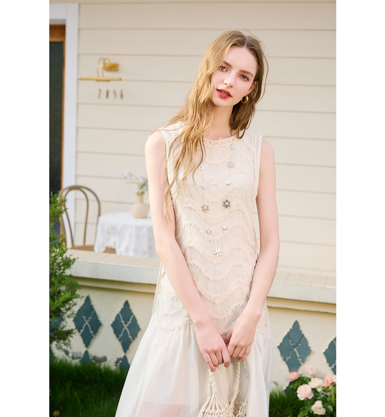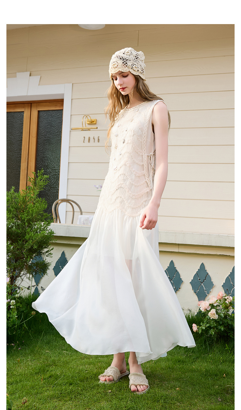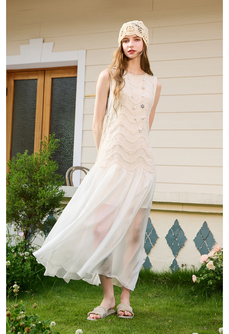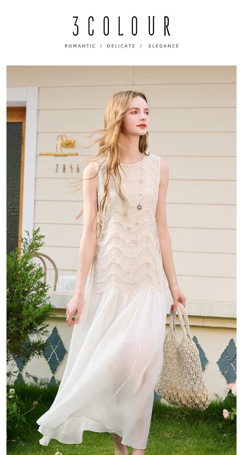 三彩2025夏季新款圆领背心裙连衣裙收腰A字裙浪漫大摆长裙M