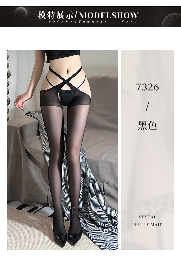 【情趣内衣】霏慕 X交叉多面镂空开裆连裤丝袜7326