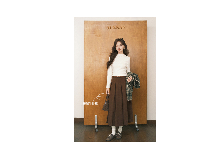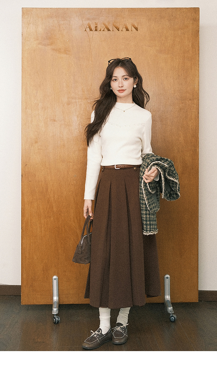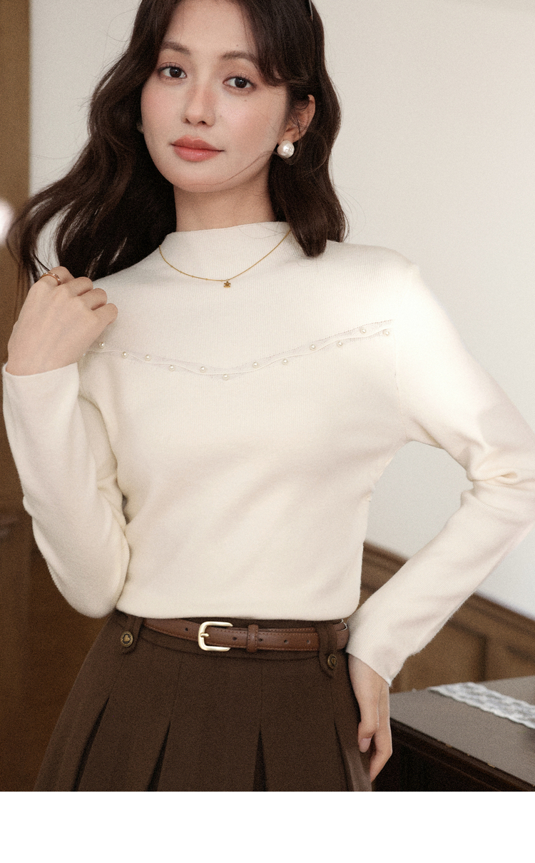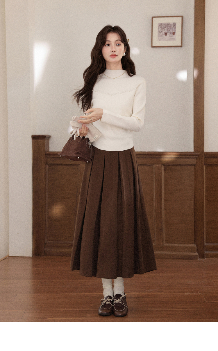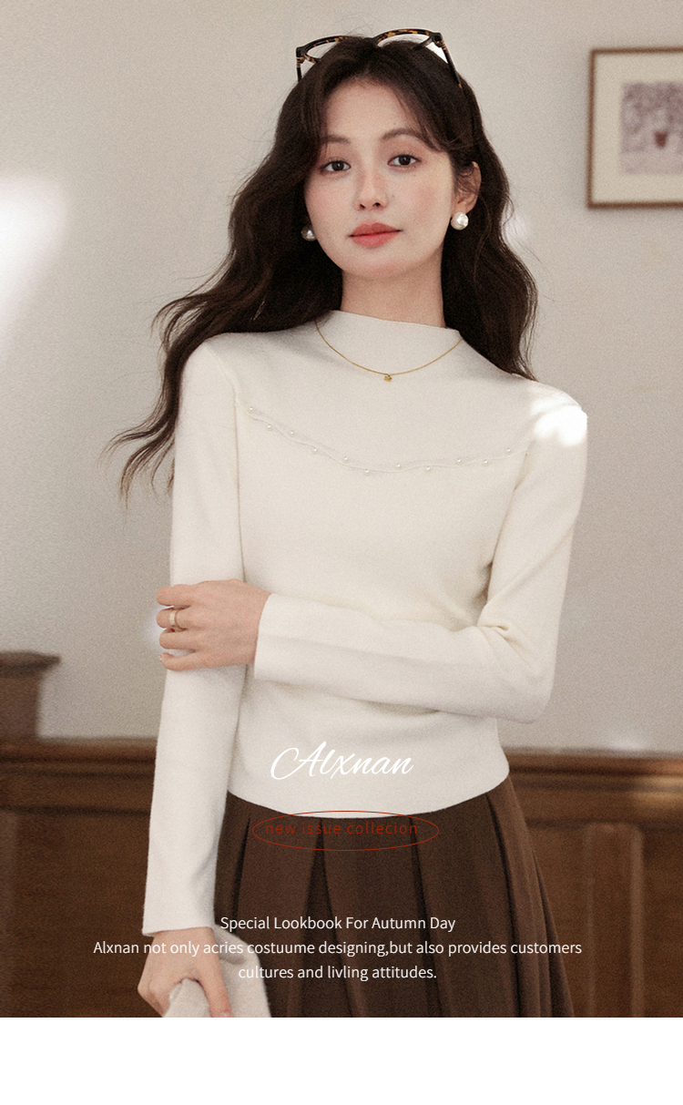 鹿向南「百搭内搭」半高领正肩杏色针织衫女早秋修身长袖打底衫