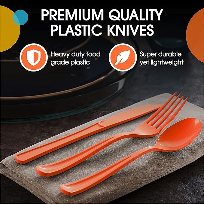 高品质设计:我们的餐具套装,耐用、一次性,适合任何餐点,无论是休闲午餐还是举办高级晚宴;这些餐具设计经受日常使用,采用现代设计,定会让您的宾客印象深刻。