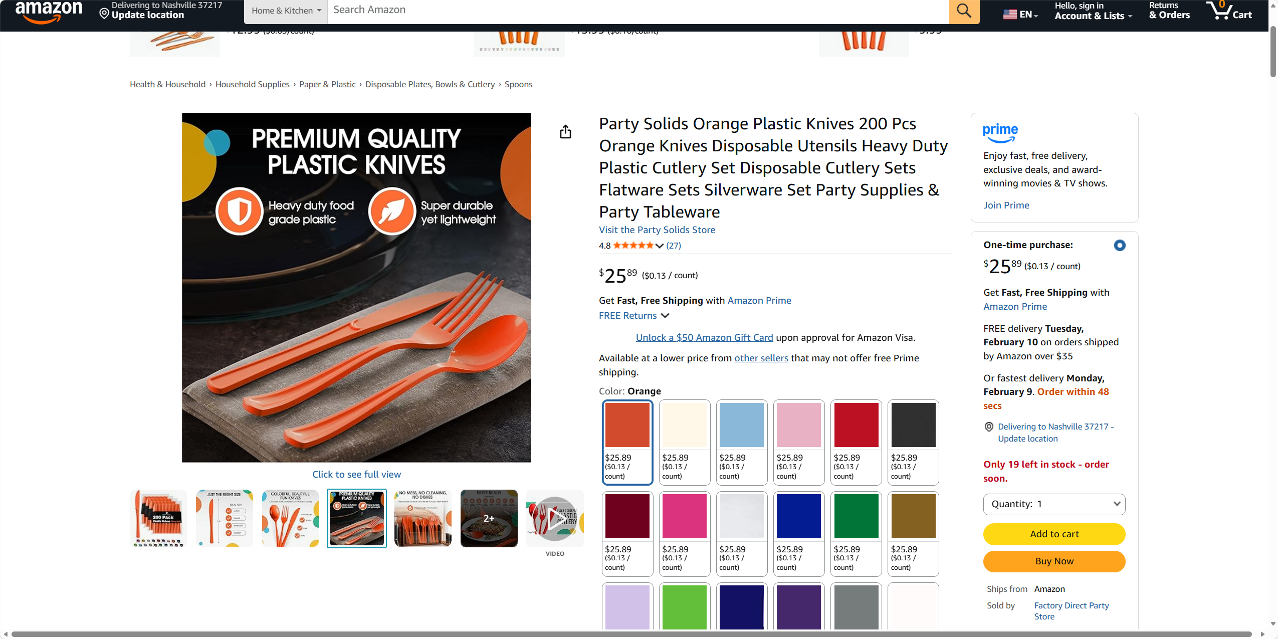 亚马逊热卖 橙色精致一次性环保餐具套装 派对宴会用品【每种餐具25个X3=75个】