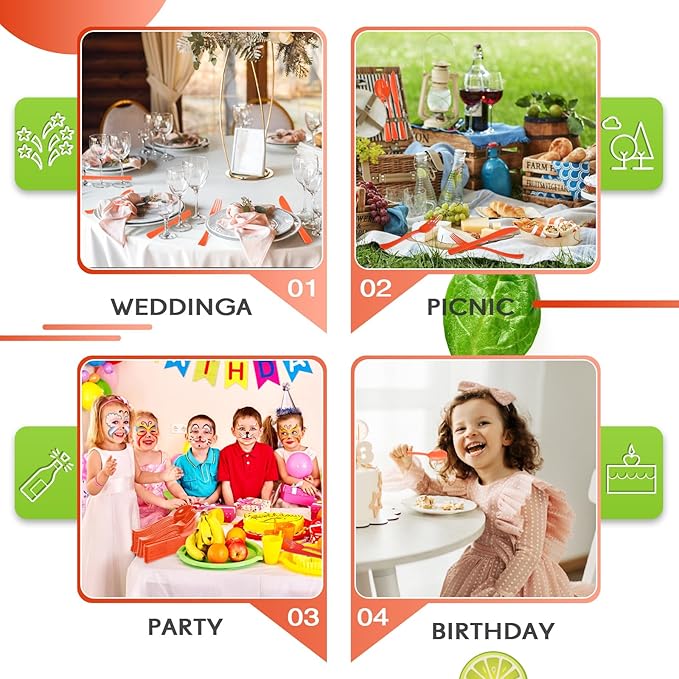 轻松清理:我们考虑了你,选择这些实惠的派对用品一次性用品。它们可以轻松清理,省去洗碗的麻烦。这些优雅的餐具是野餐、生日派对、婚礼、订婚等的绝佳选择。这些塑料餐耐用且可一次性使用,是任何活动或场合的理想选择。