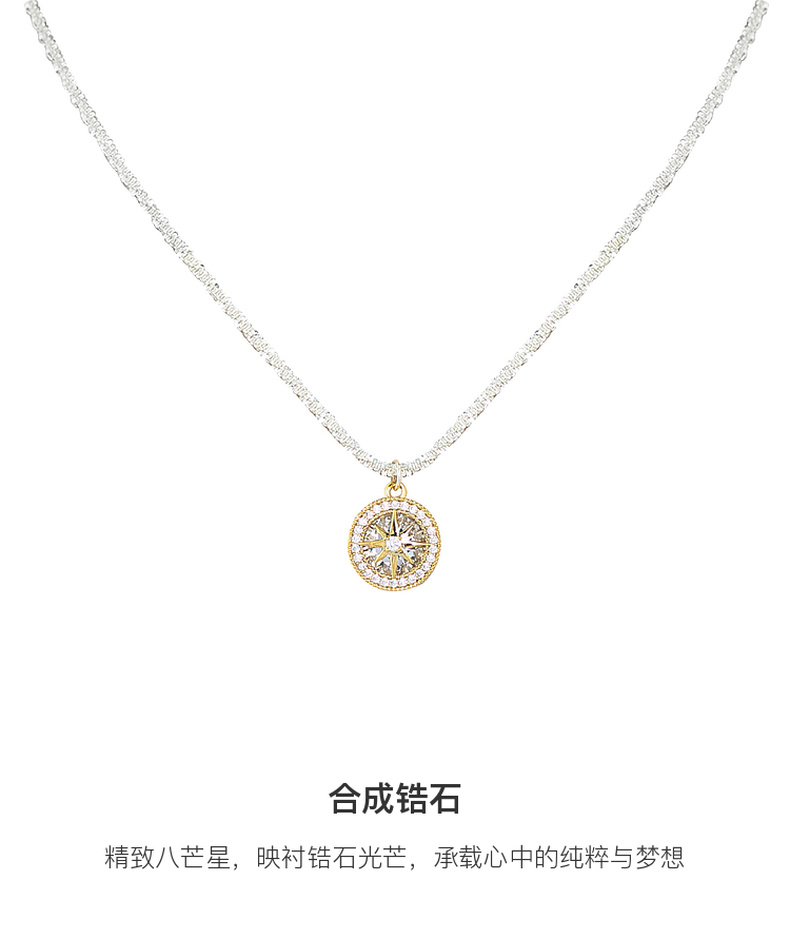 三彩2025新款合成锆石吊坠项链可调节套链饰品礼物锁骨链八芒星