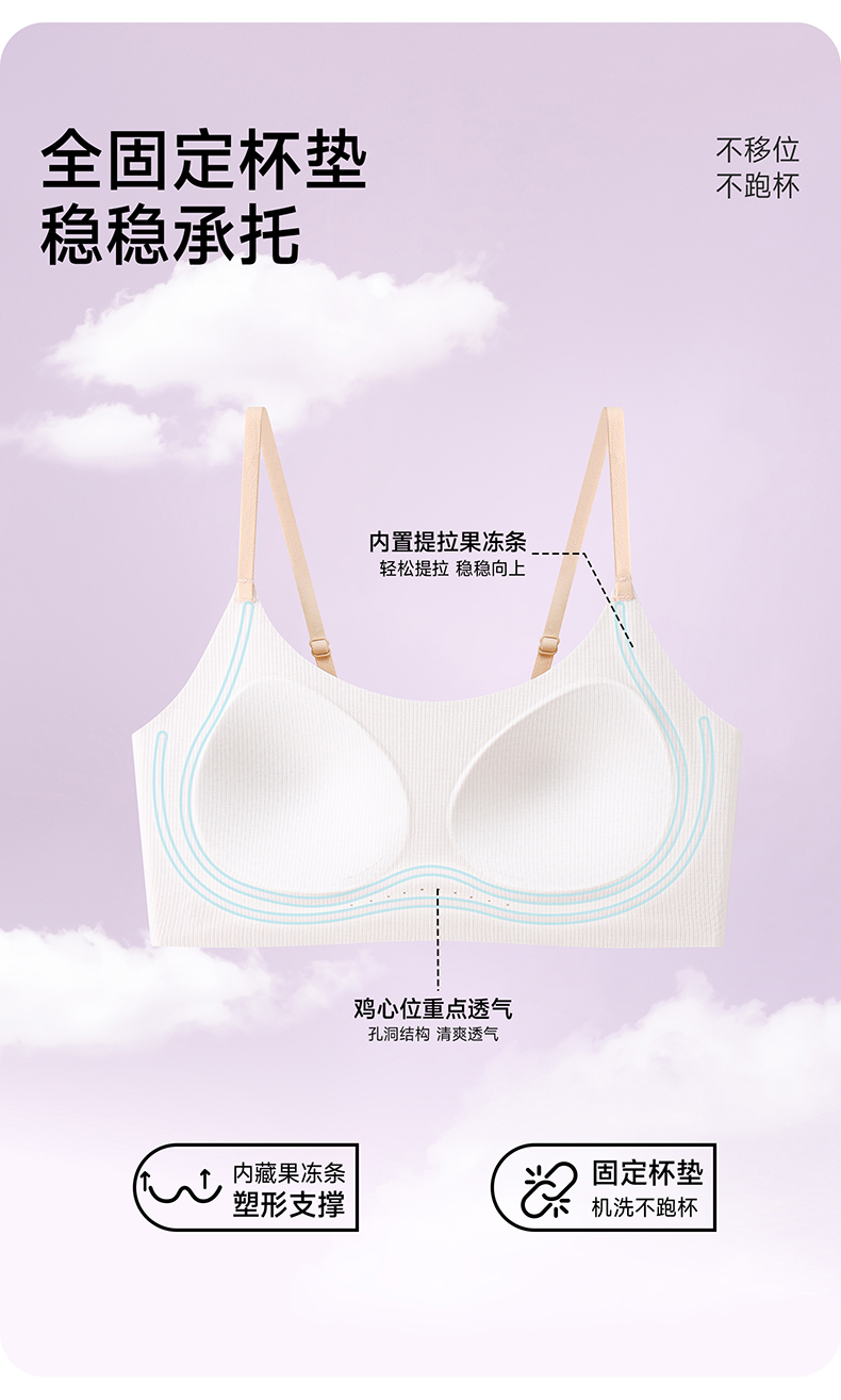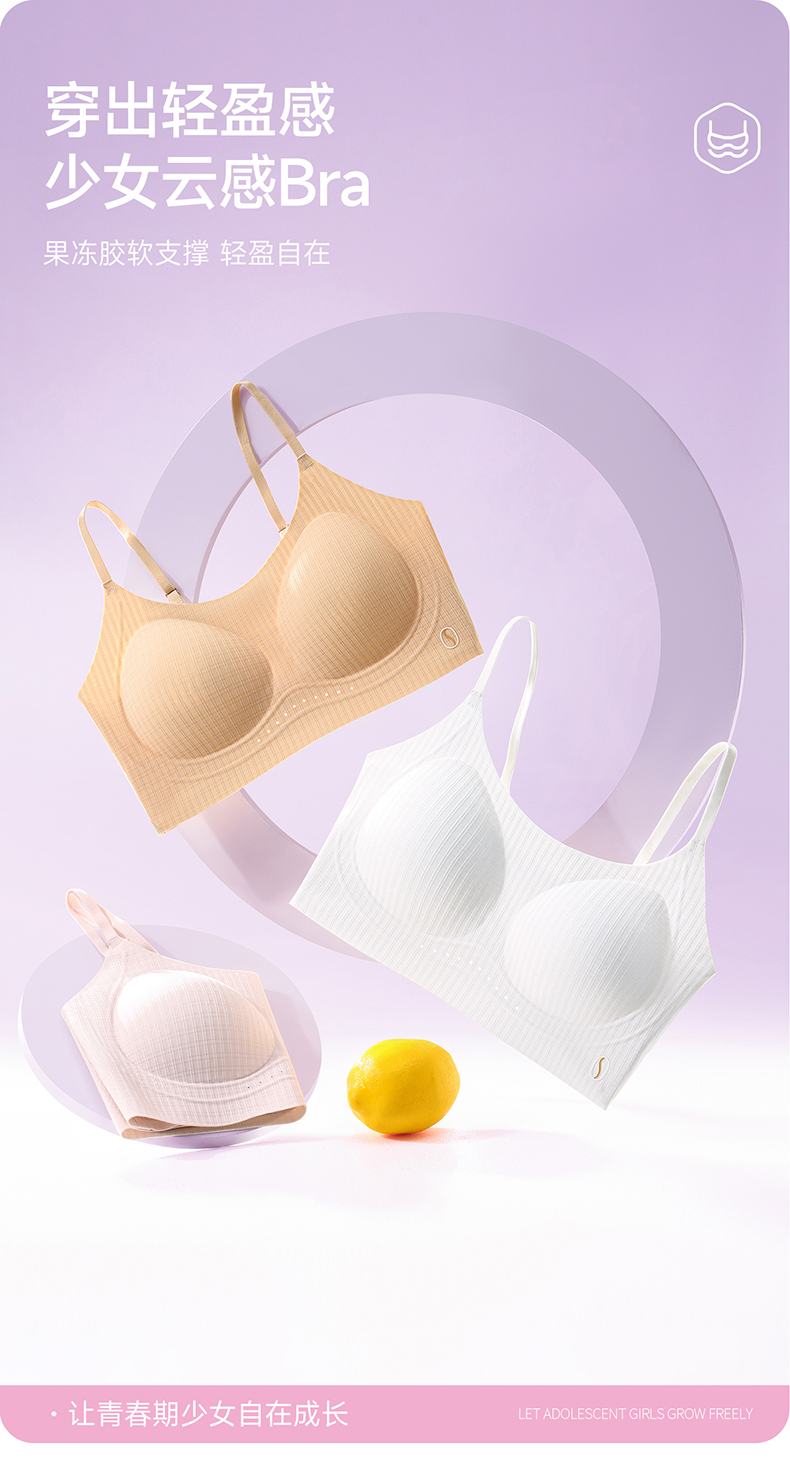 【两件装】草本初色轻塑型10A级抗菌少女背心内衣 细肩带 青少年款 M-XXL码 肤色/白色/粉色 2624款