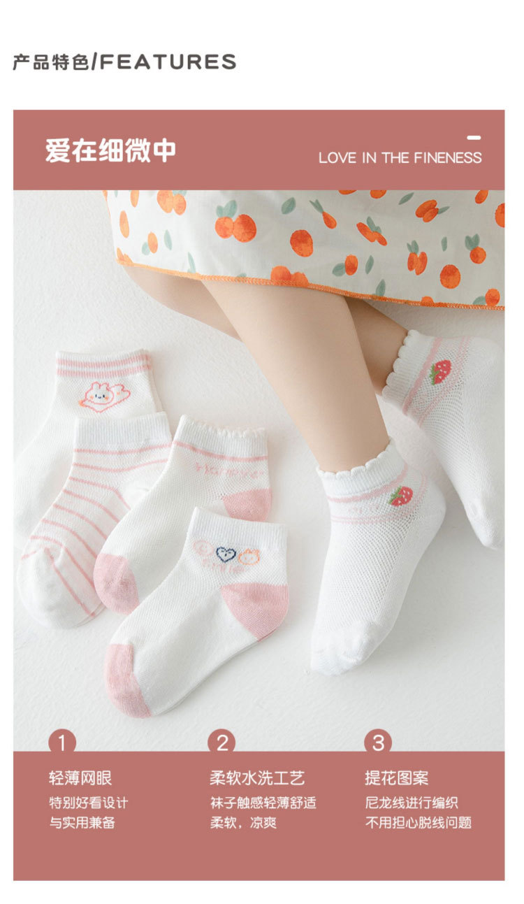 【爆款5双装】儿童袜子春夏季韩版透气网眼袜子男女童可爱中大童