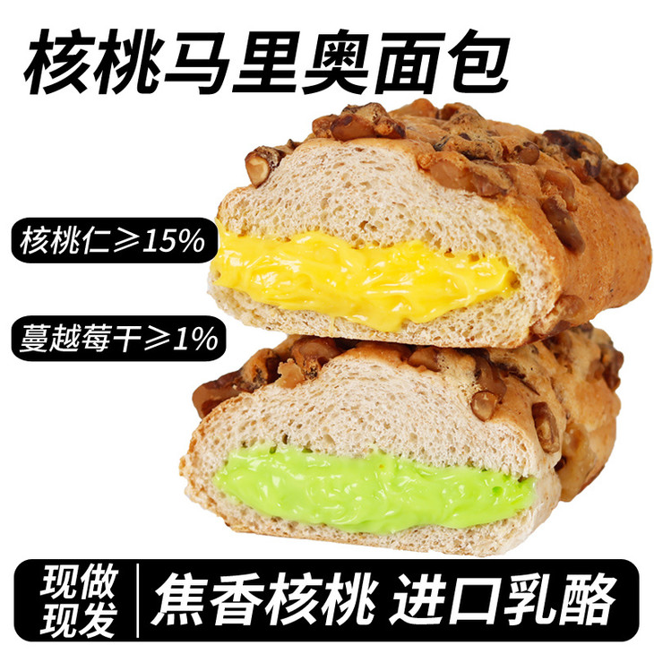 🌟爆款预警💰19.9秒杀4包💰29.9秒杀8包【思味美 核桃马里奥面包】开心果酱×芥末🧀奶酪の神仙打架!核桃马里奥面包一口解锁双重快乐🎮