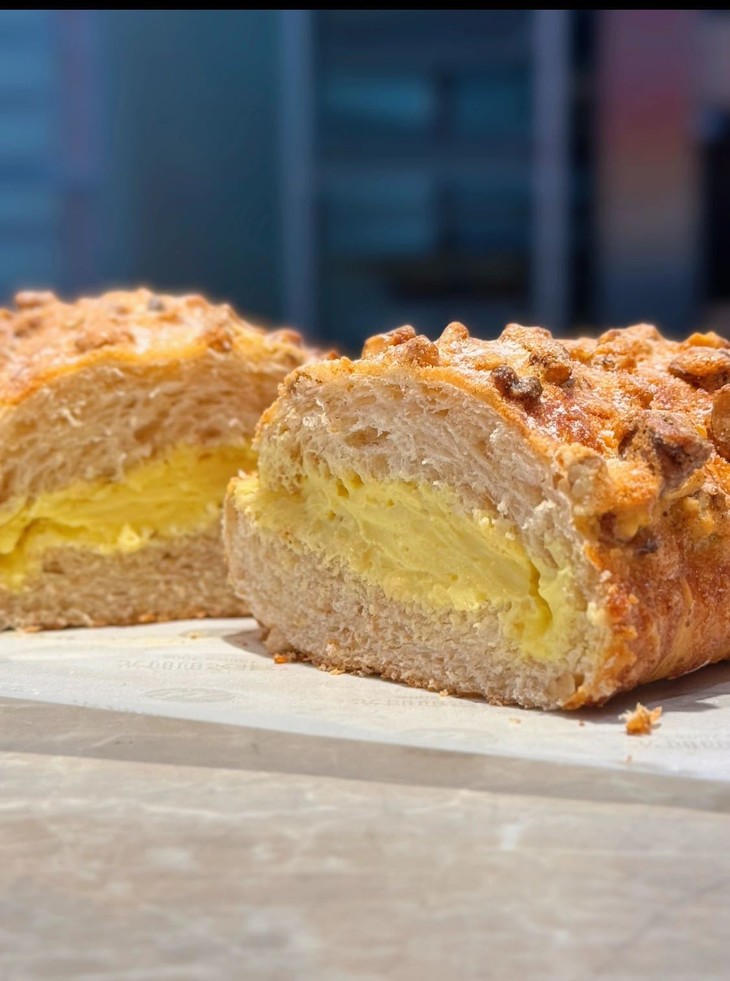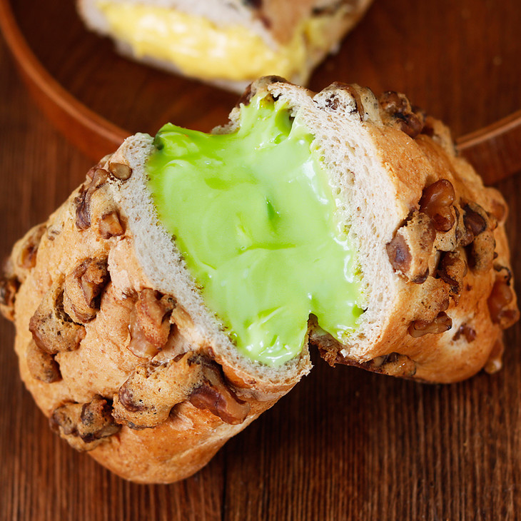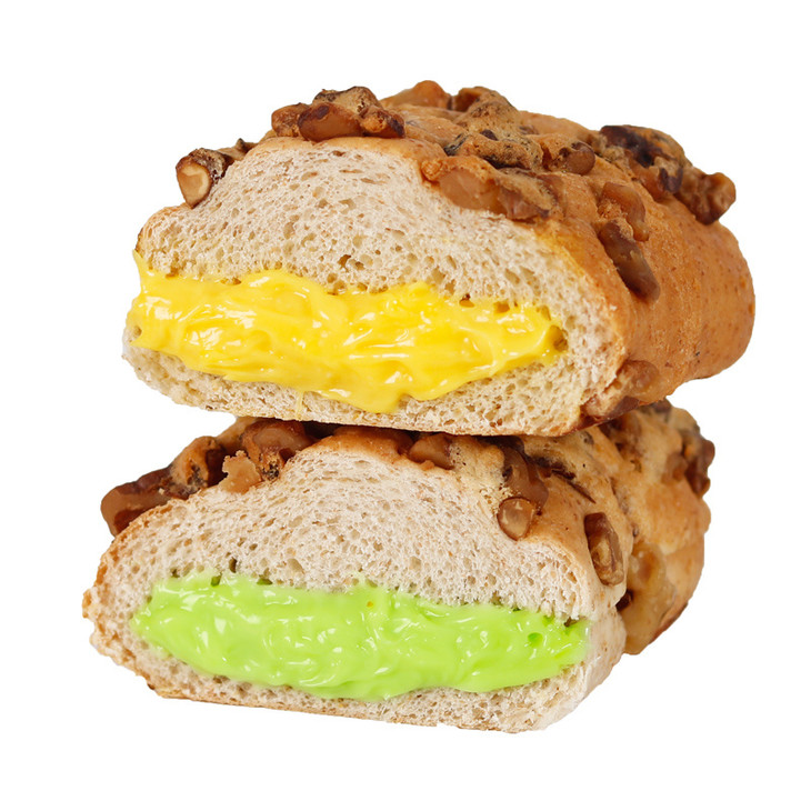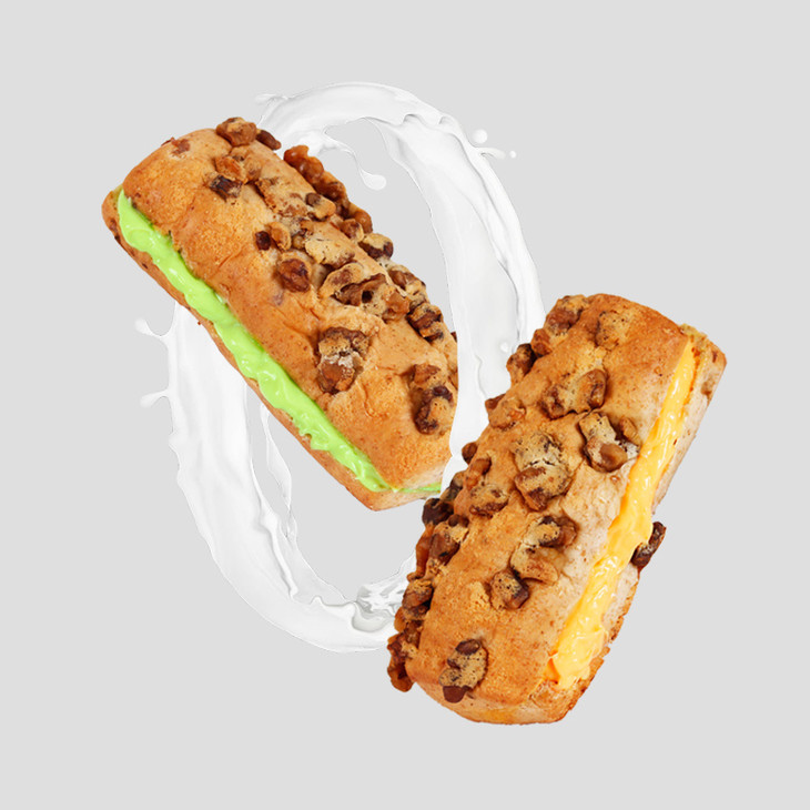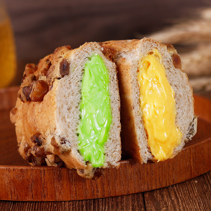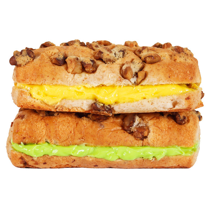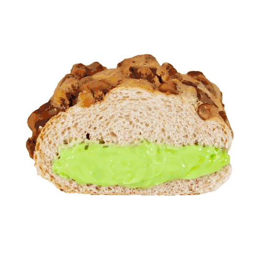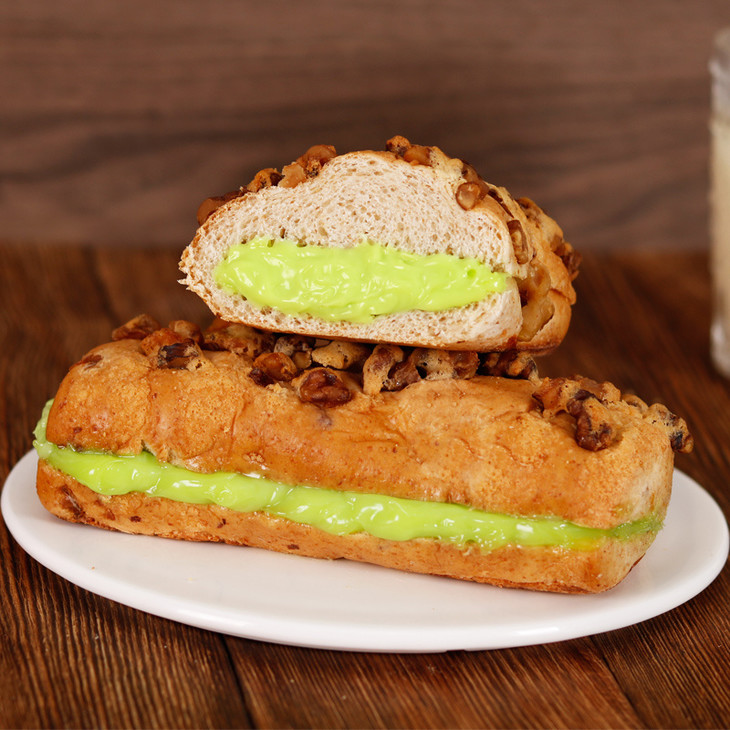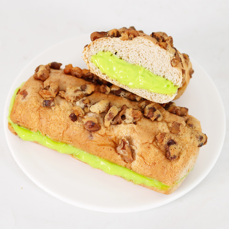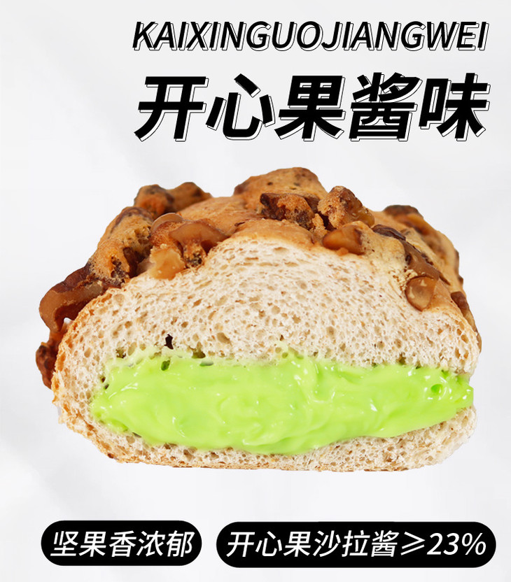 开心果酱味💚 咬开面包,绿宝石般的特调开心果酱瞬间 “滋溜” 涌出来, 浓醇丝滑在舌尖炸开,坚果香气疯狂暴击味蕾!🌰 坚果香与奶香完美融合,一口下去全是料, 又浓又滑还不腻,带给你一口酥脆的多重惊喜✨。