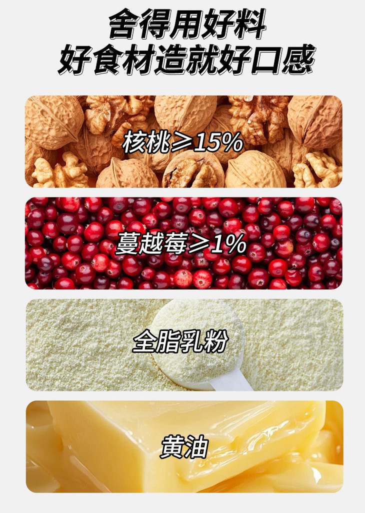 灵魂细节控 ▪优质黄油🧈➕新西兰进口乳粉🥛酥皮焦香掉渣! ▪海藻糖代替蔗糖🍬减肥姐妹也能冲~ ▪60天保质期⏳锁住湿润软糯不干噎!