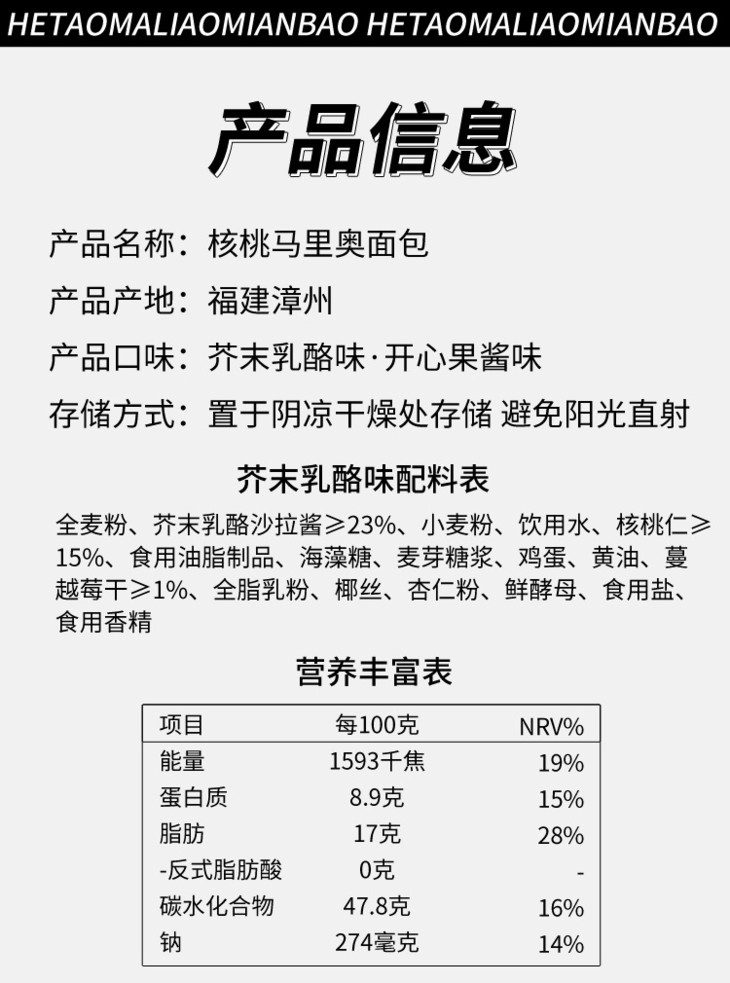 早餐是一天中为身体提供能量的重要一餐☀️ 经过一夜的睡眠 身体能量储备已经消耗殆尽😴 此时急需补充营养来启动新一天新陈代谢🔋 如果早上不爱吃早餐 身体就会像一辆没有燃料的汽车,无法正常运转 🚗💨 长期不吃早餐会导致身体代谢减缓 脂肪堆积 容易引发肥胖问题‼‼‼ 推荐这款美味核桃马里奥面包🥐 营养又好吃 还是独立包装📦 出门携带一个真的超级方便 早餐力推!!👍