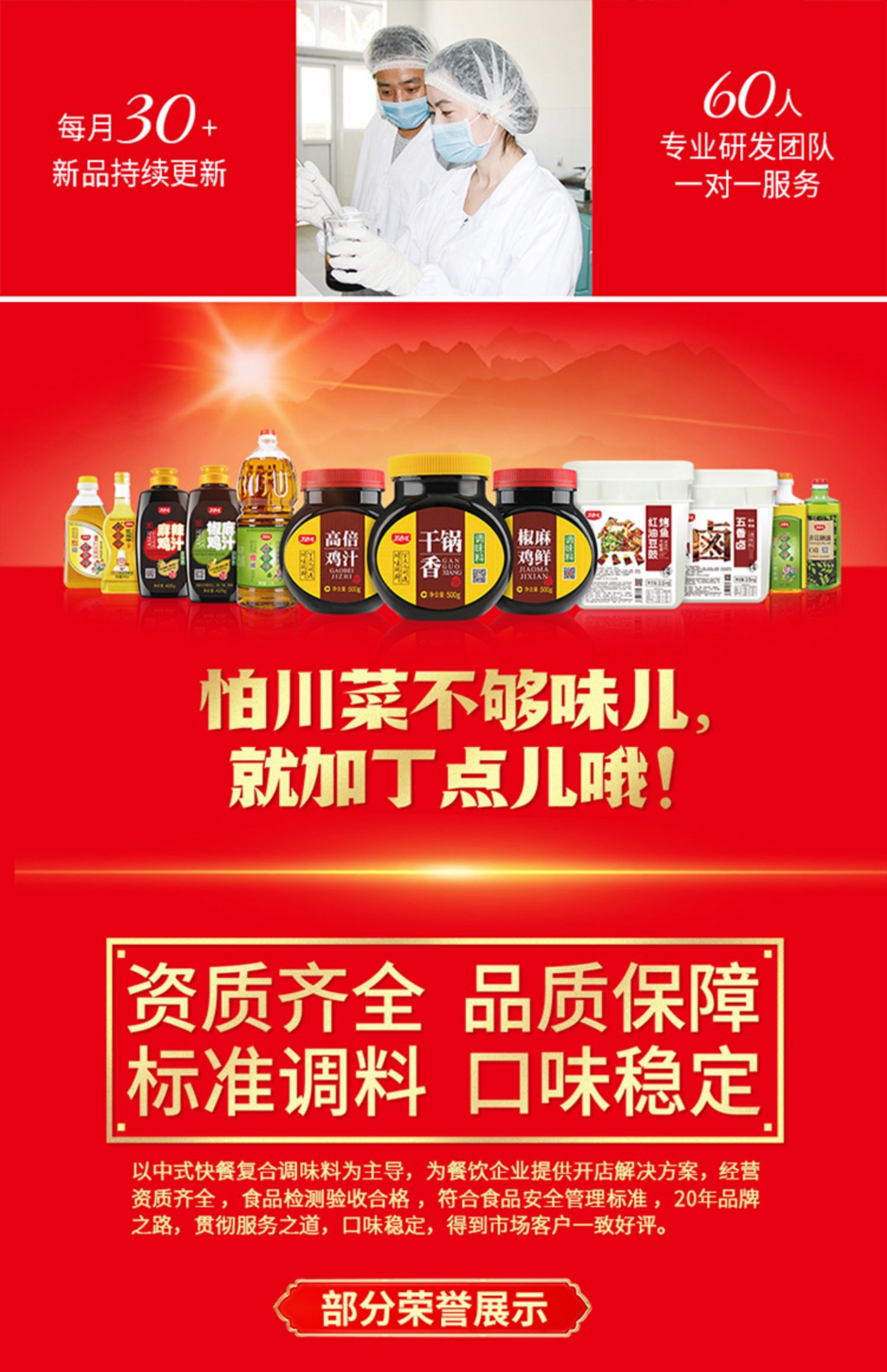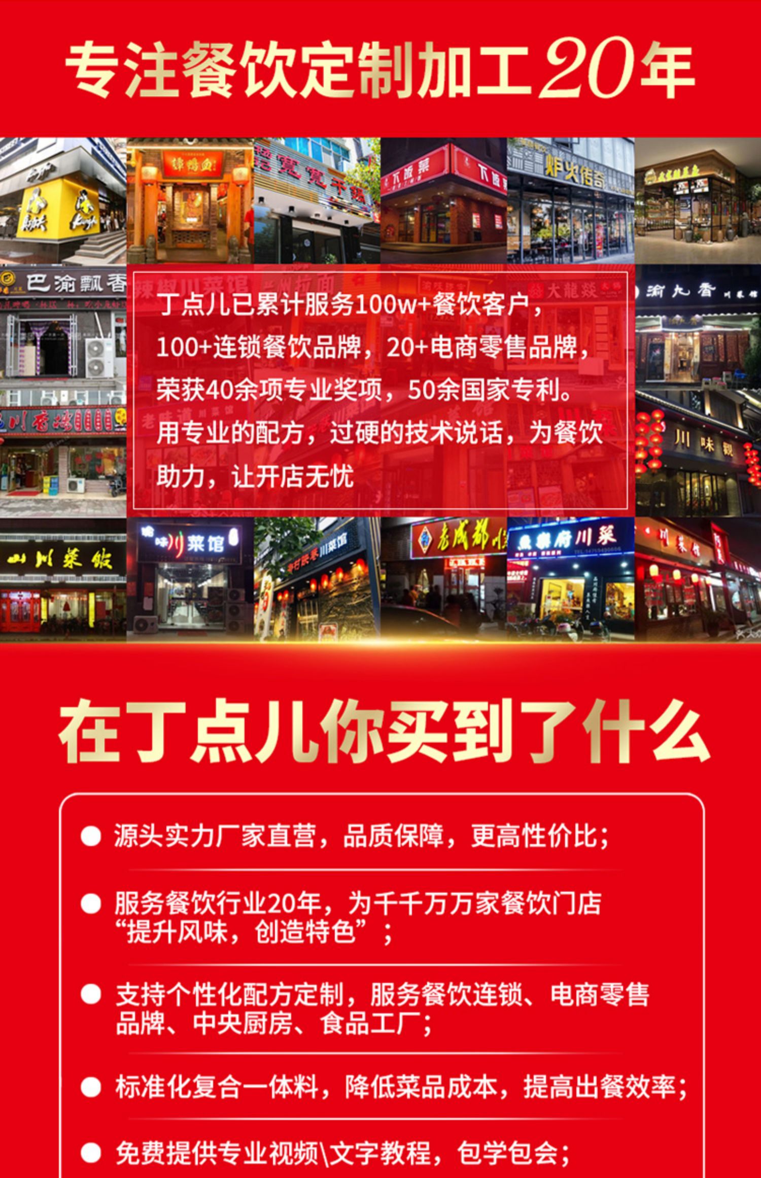 四川丁点儿食品开发股份有限公司,是集川菜调味料研发、生产、销售、服务为一体的现代化企业,专注为餐饮客户提供川菜调味解决方案。公司成立至今,服务了超百万家的餐饮门店以及连锁品牌。
