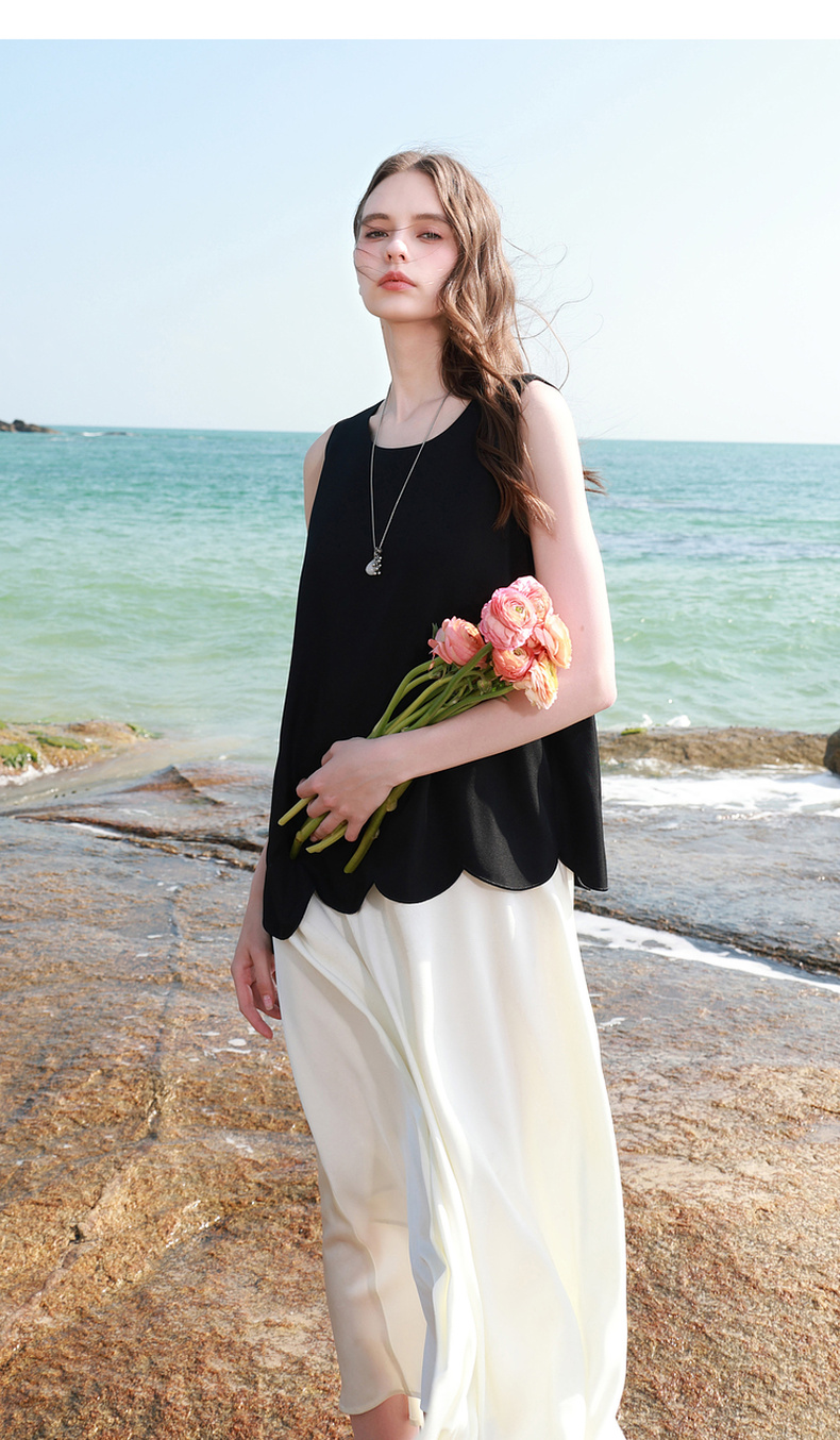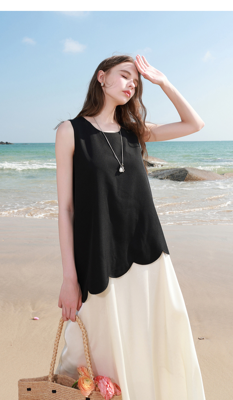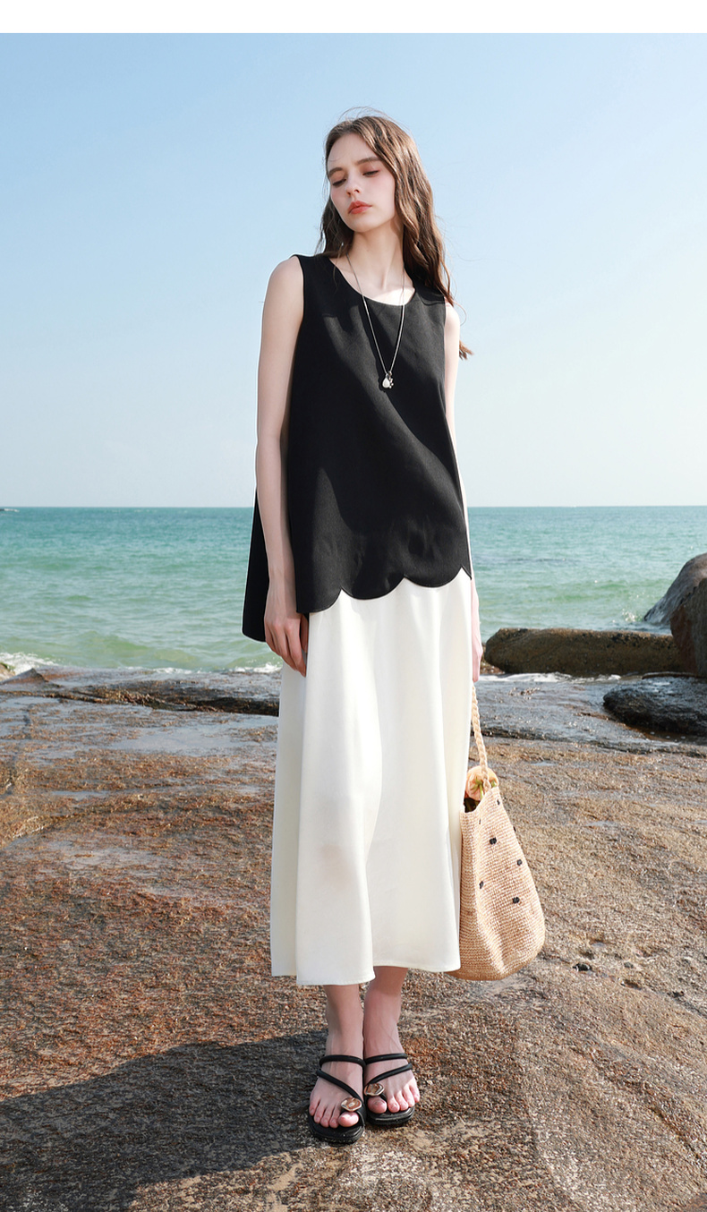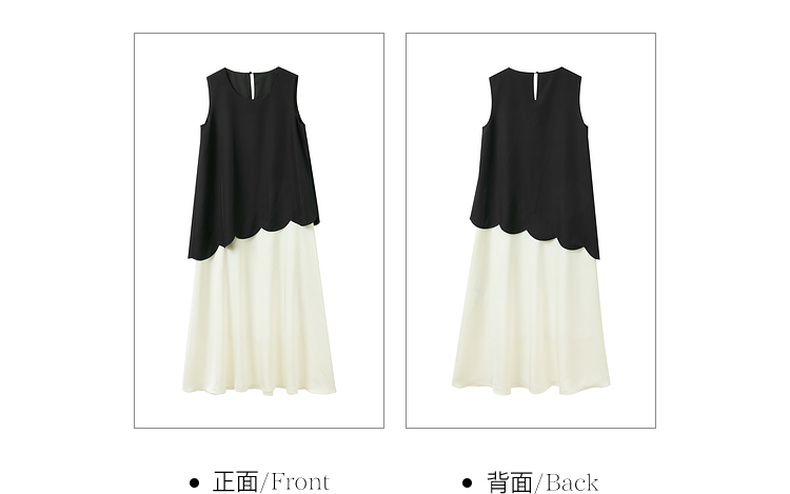 三彩2026春季新款圆领背心裙假两件拼接A字裙连衣裙简约长裙M