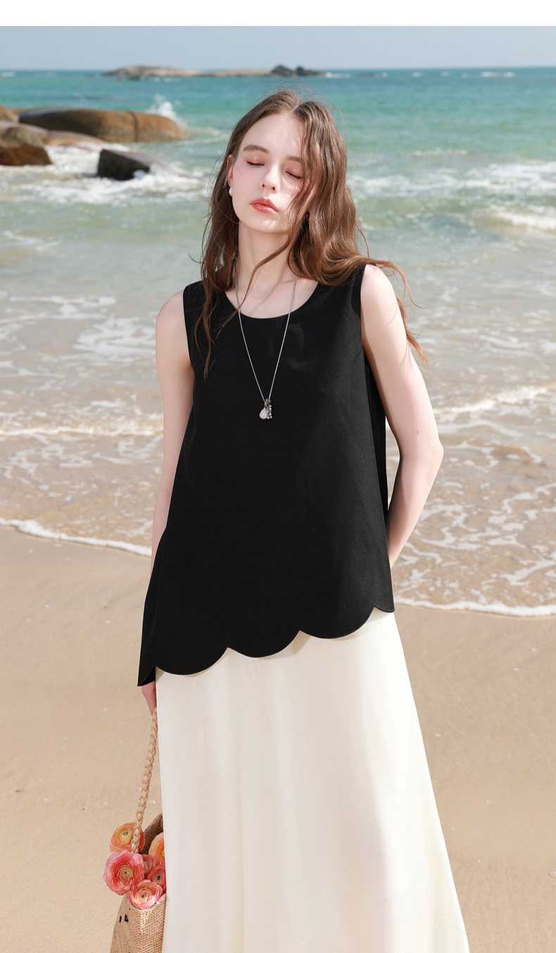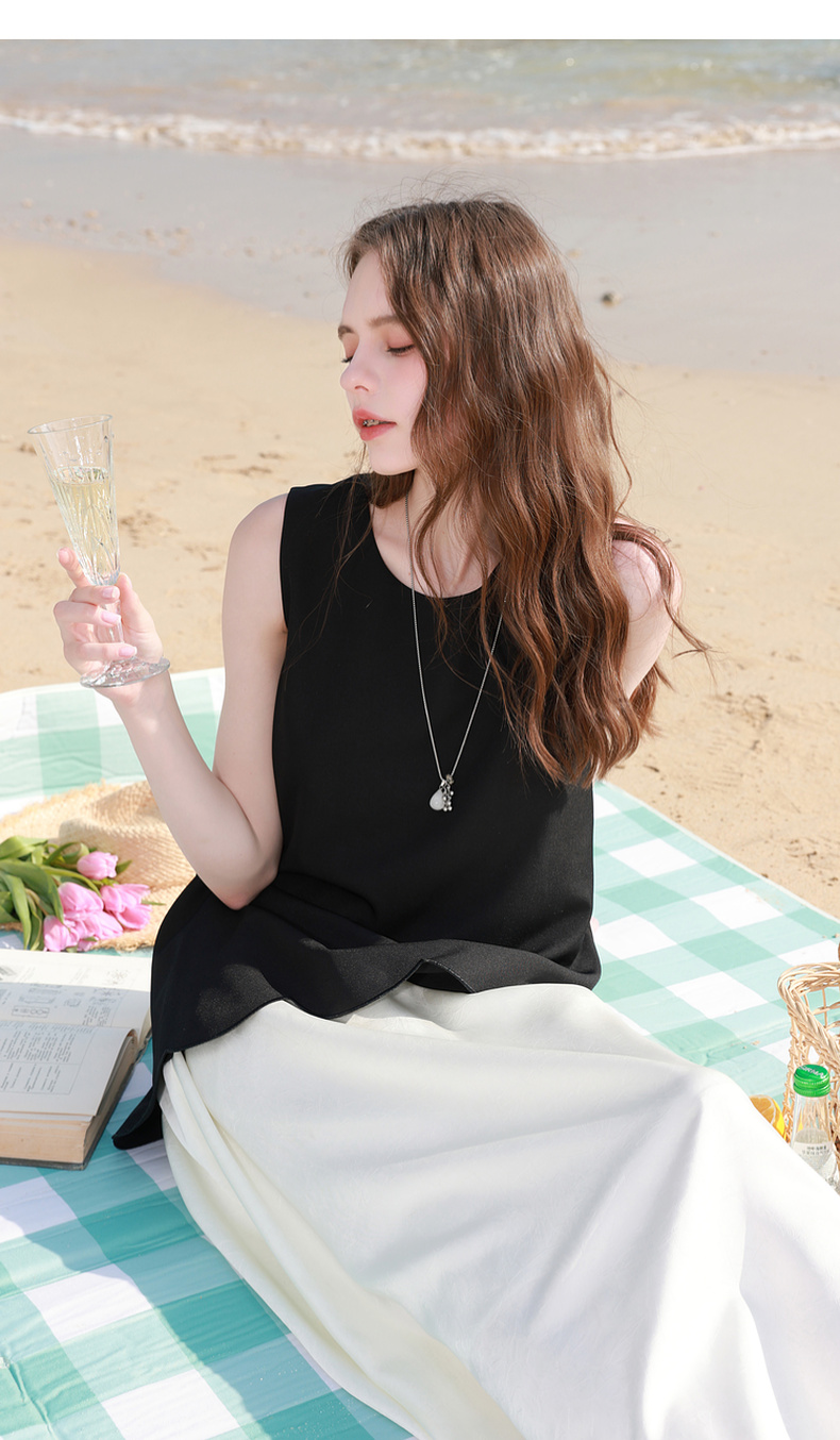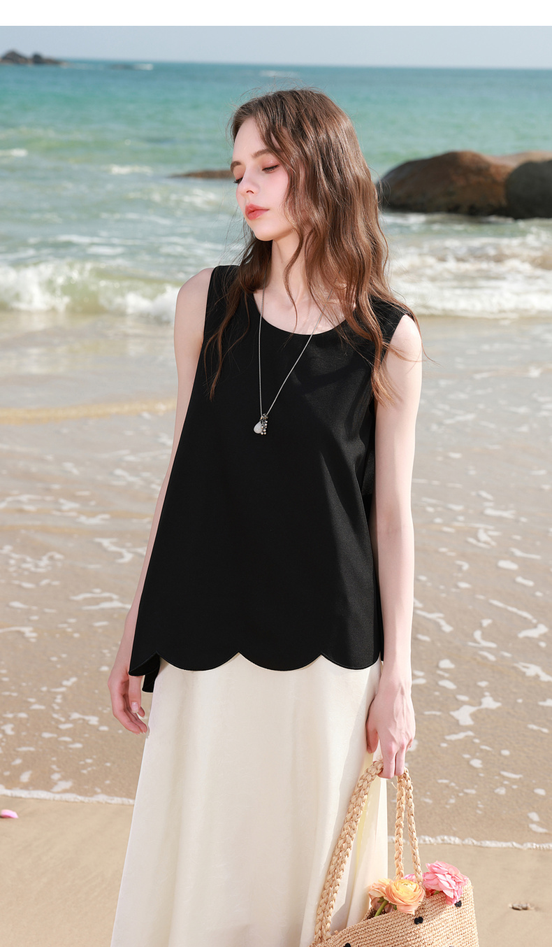三彩2026春季新款圆领背心裙假两件拼接A字裙连衣裙简约长裙M