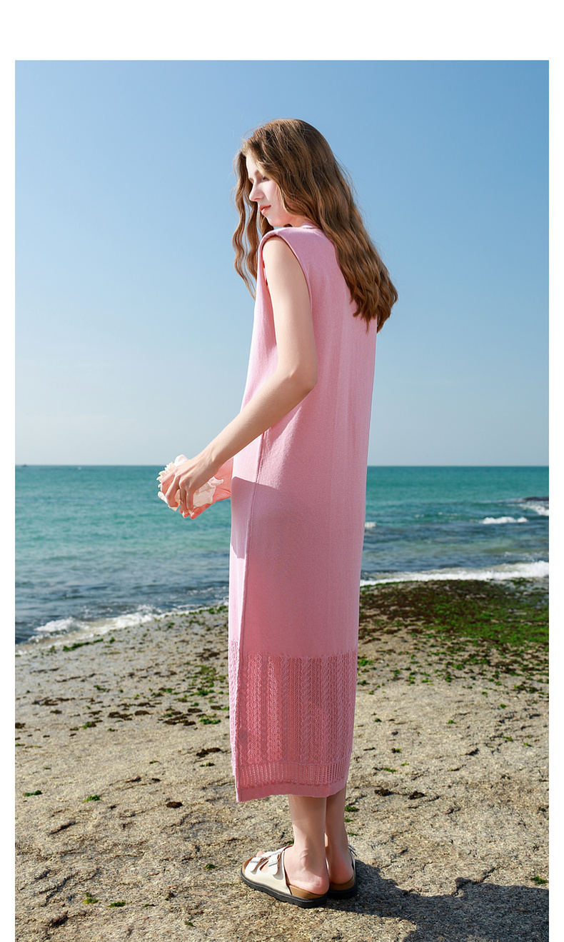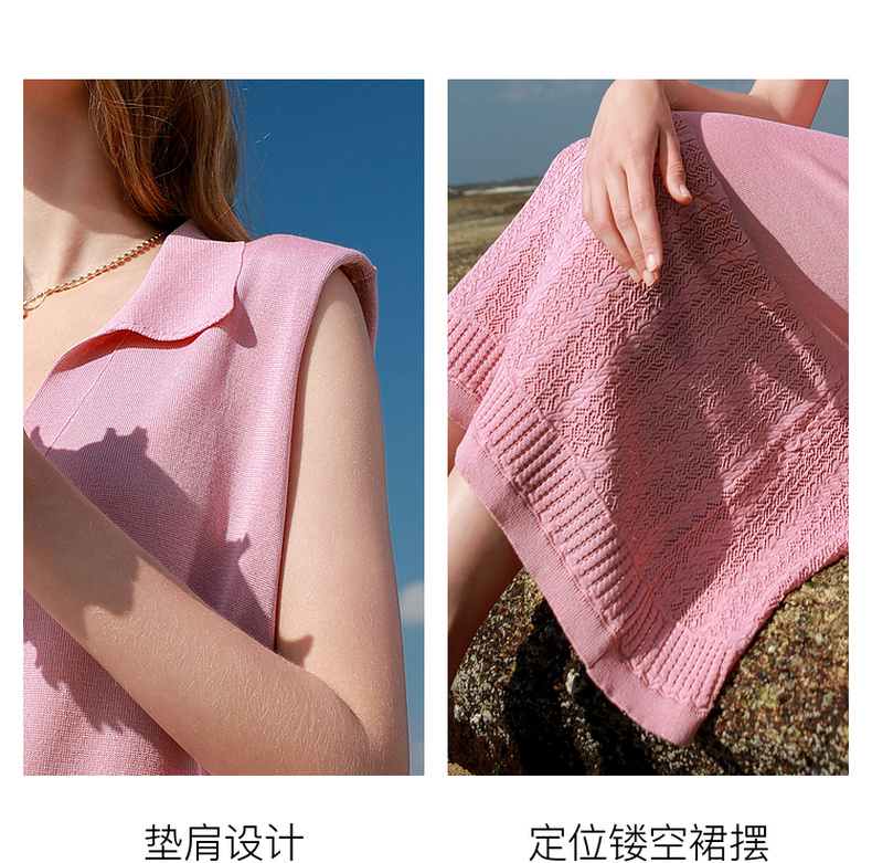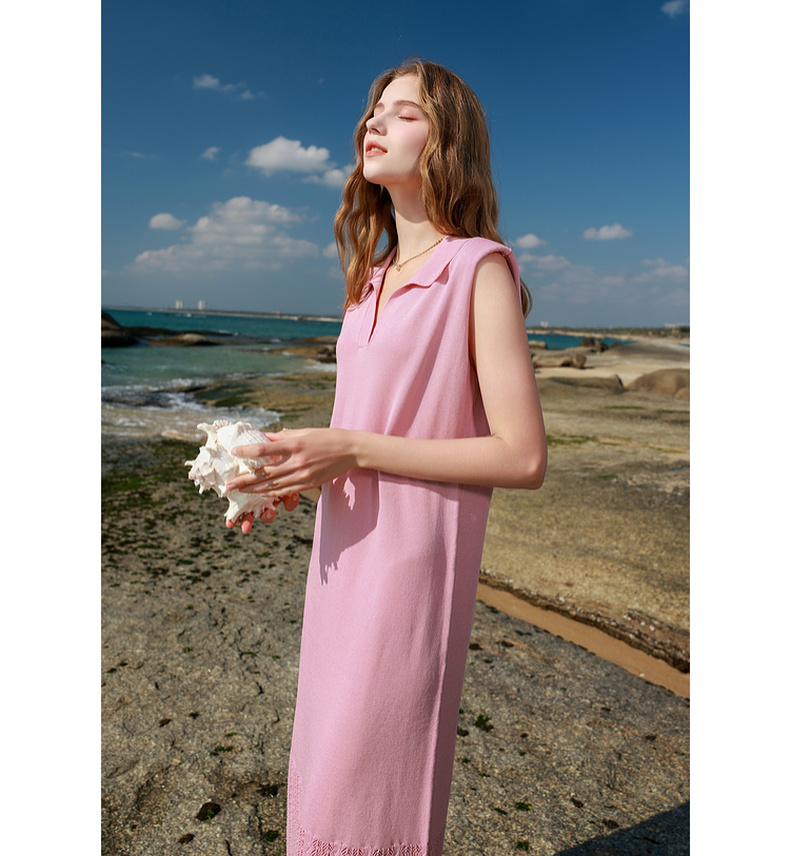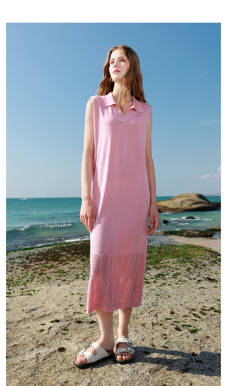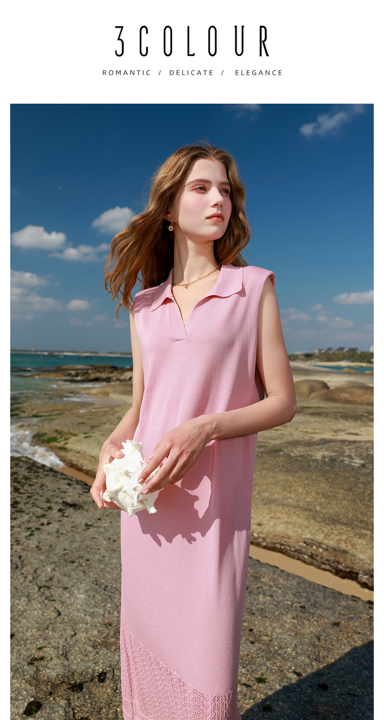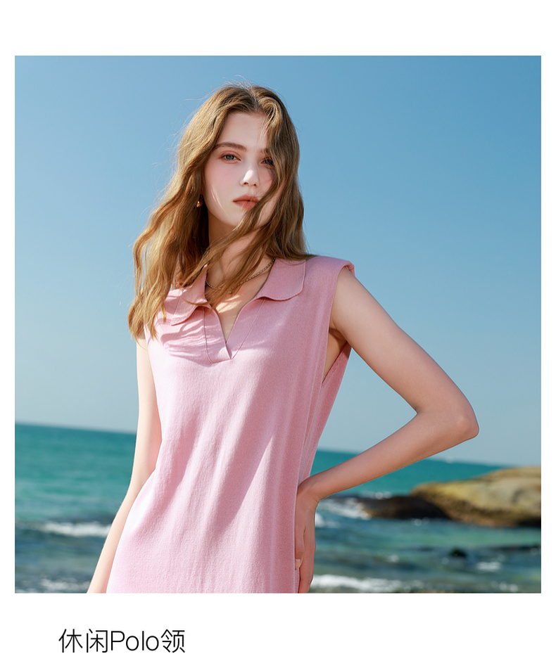 三彩2025春季新款莱赛尔休闲Polo领针织连衣裙直筒毛衫长裙M
