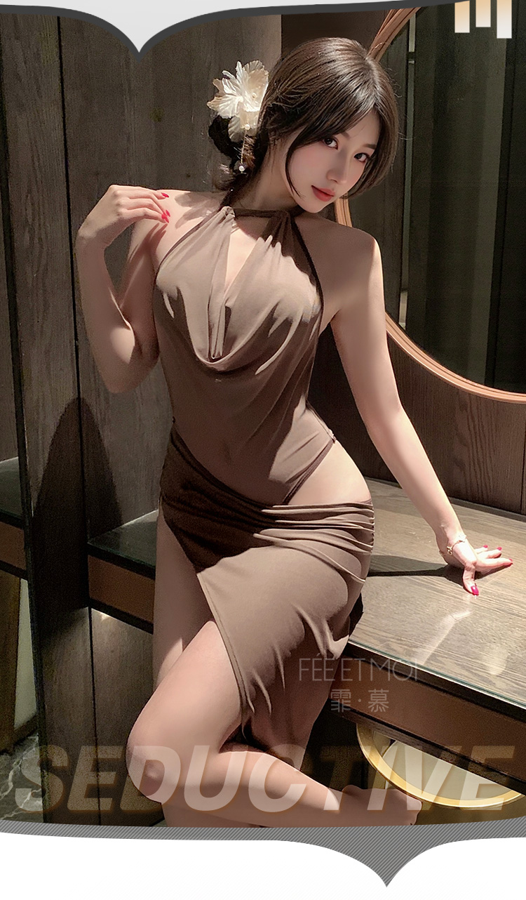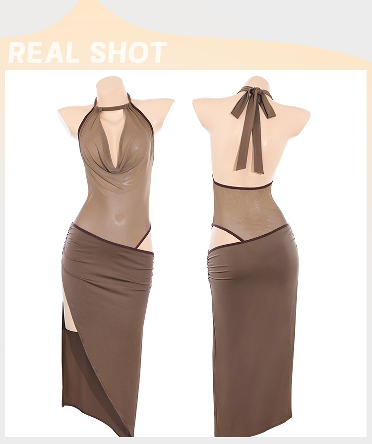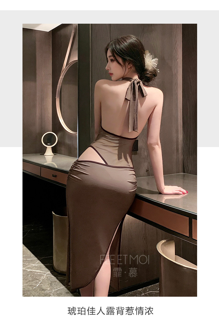【情趣内衣】霏慕 琥珀佳人深V荡领连体衣ZY163